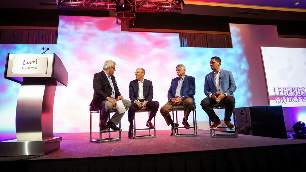 ARLINGTON -- In a conference room in a brand-new hotel, surrounded by picture windows overlooking the construction of Globe Life Field, the chief architects of the Rangers' franchise swapped stories and wisdom Thursday night.
