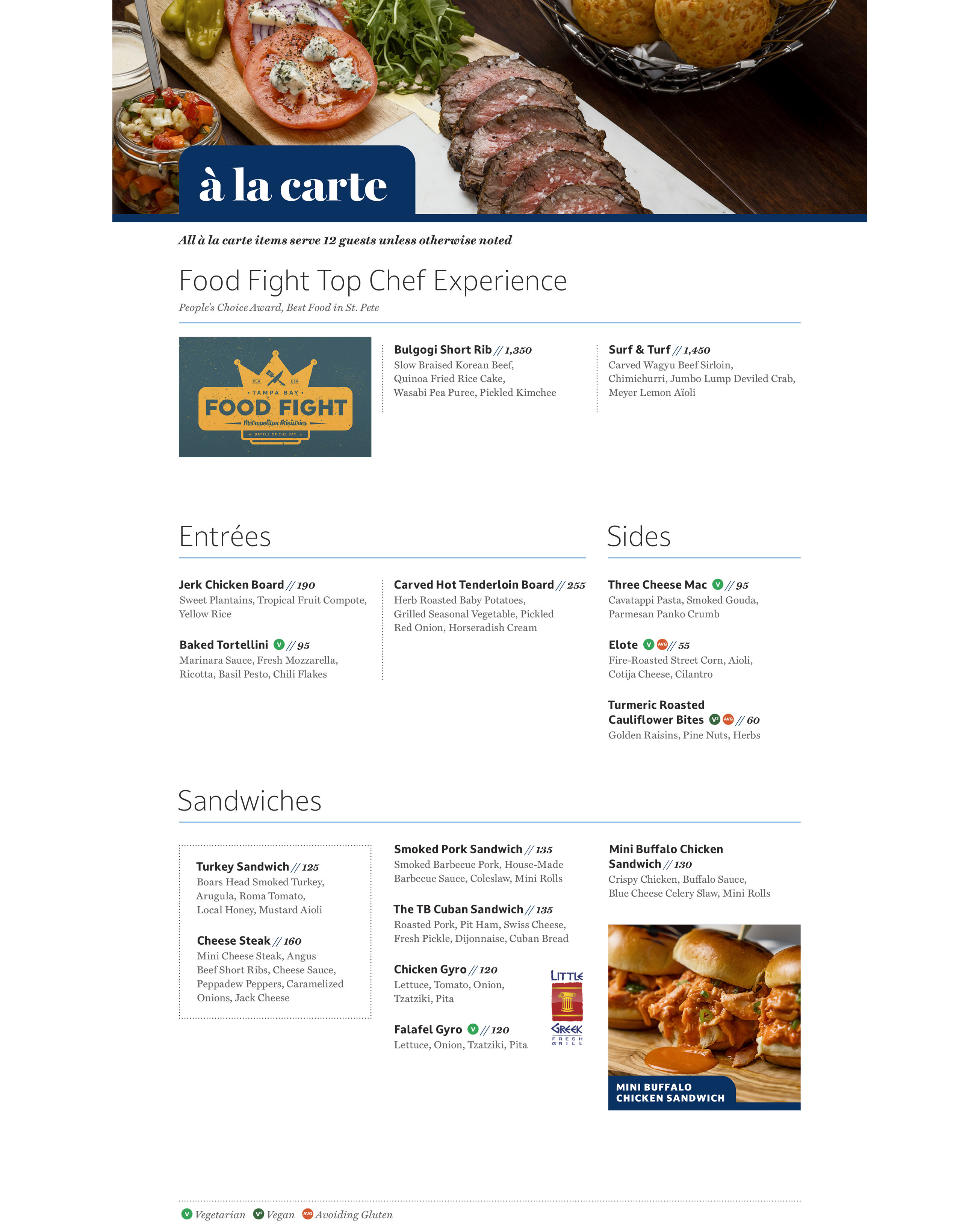 For catering additions or questions, please contact Levy Restaurants at 727-825-3380 or Rayssuites@levyrestaurants.com.