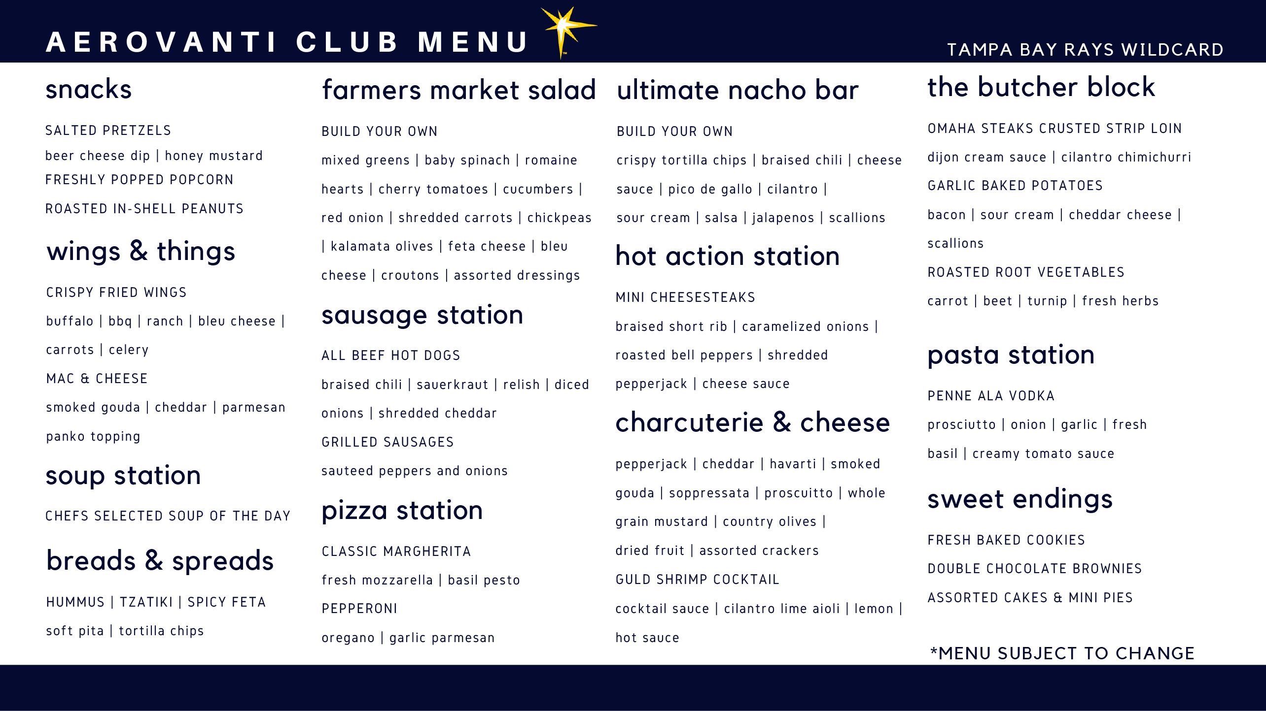 AeroVanti Club Menu