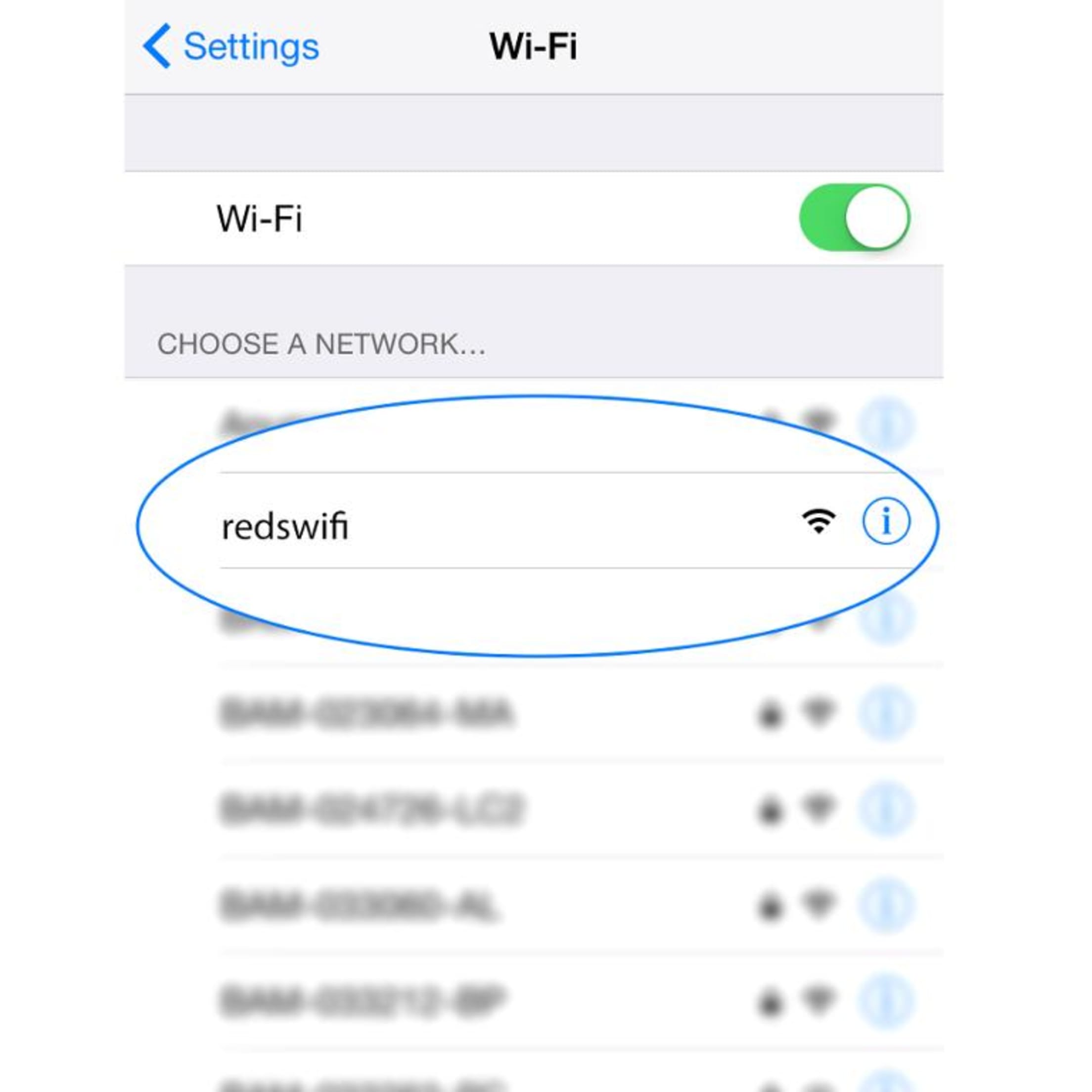 Connect to the Reds WiFi network by searching for the "redswifi" SSID in Settings. No password is required to connect.