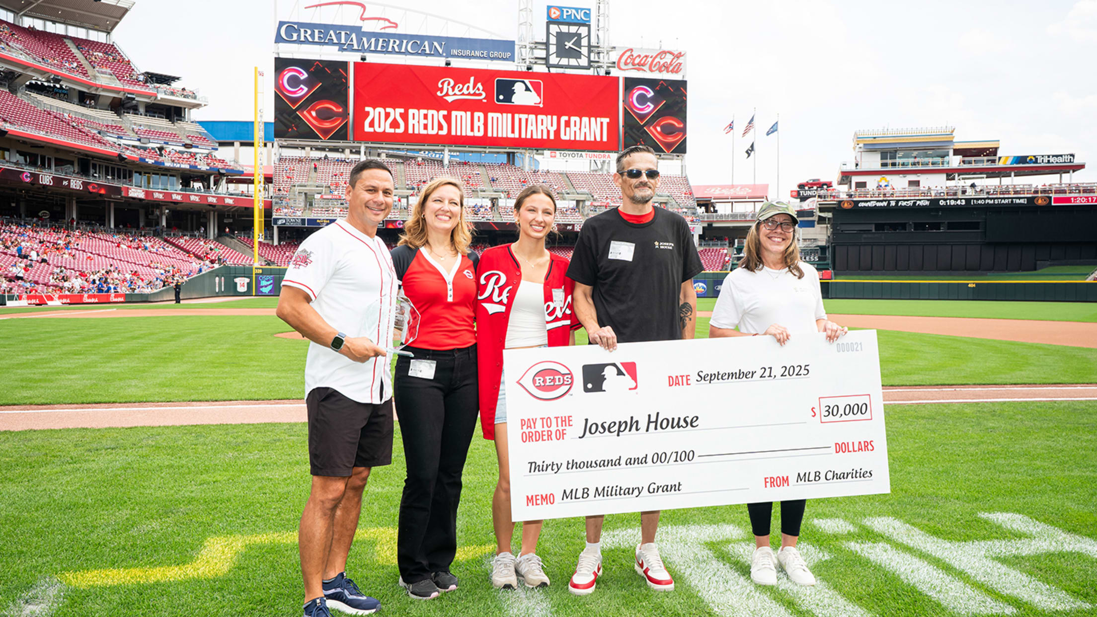 As part of the Reds’ Hispanic Heritage celebration, Jon and Anya were honored for their involvement and work with The Joseph House, which serves Great Cincinnati’s veteran community. The nonprofit received a $30,000 Major League Baseball Military Grant on behalf of the Reds.