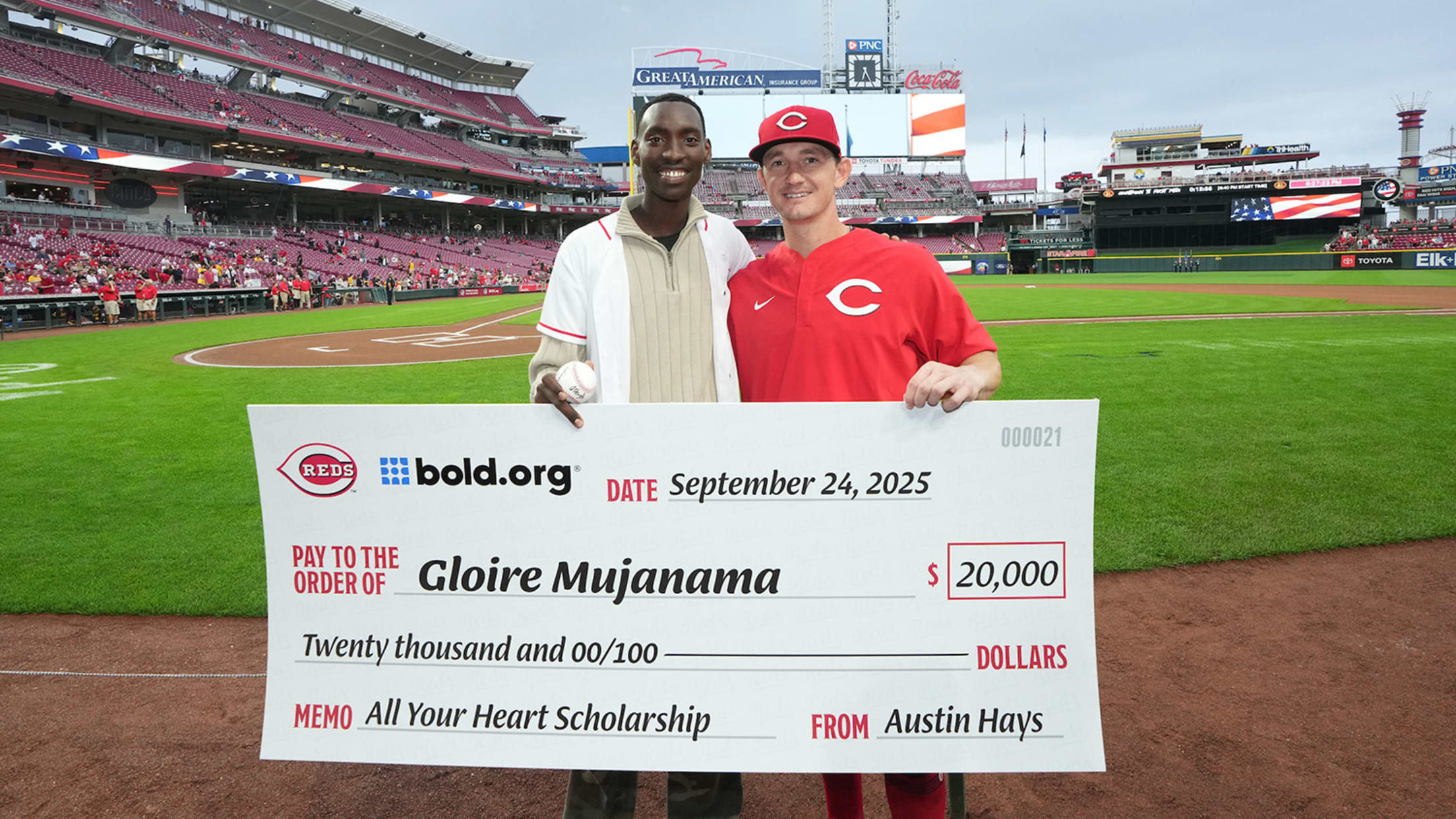 Outfielder Austin Hays, in conjunction with the Cincinnati Reds and Bold.org, brought back the Austin Hays “All Your Heart” Scholarship, which awarded Ohio student Gloire Mujanama $20,000 to further his education.
