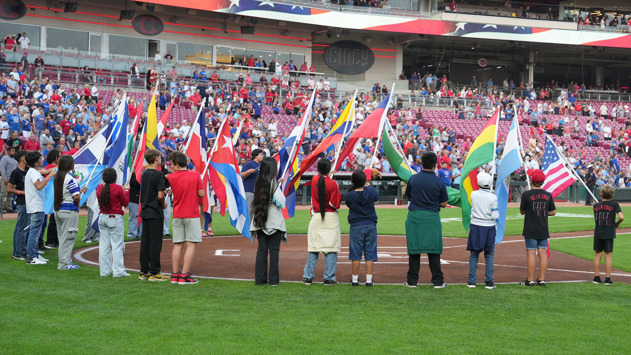 At the ballpark, pregame and in-game ceremonies centered around Cincinnati’s Hispanic community.