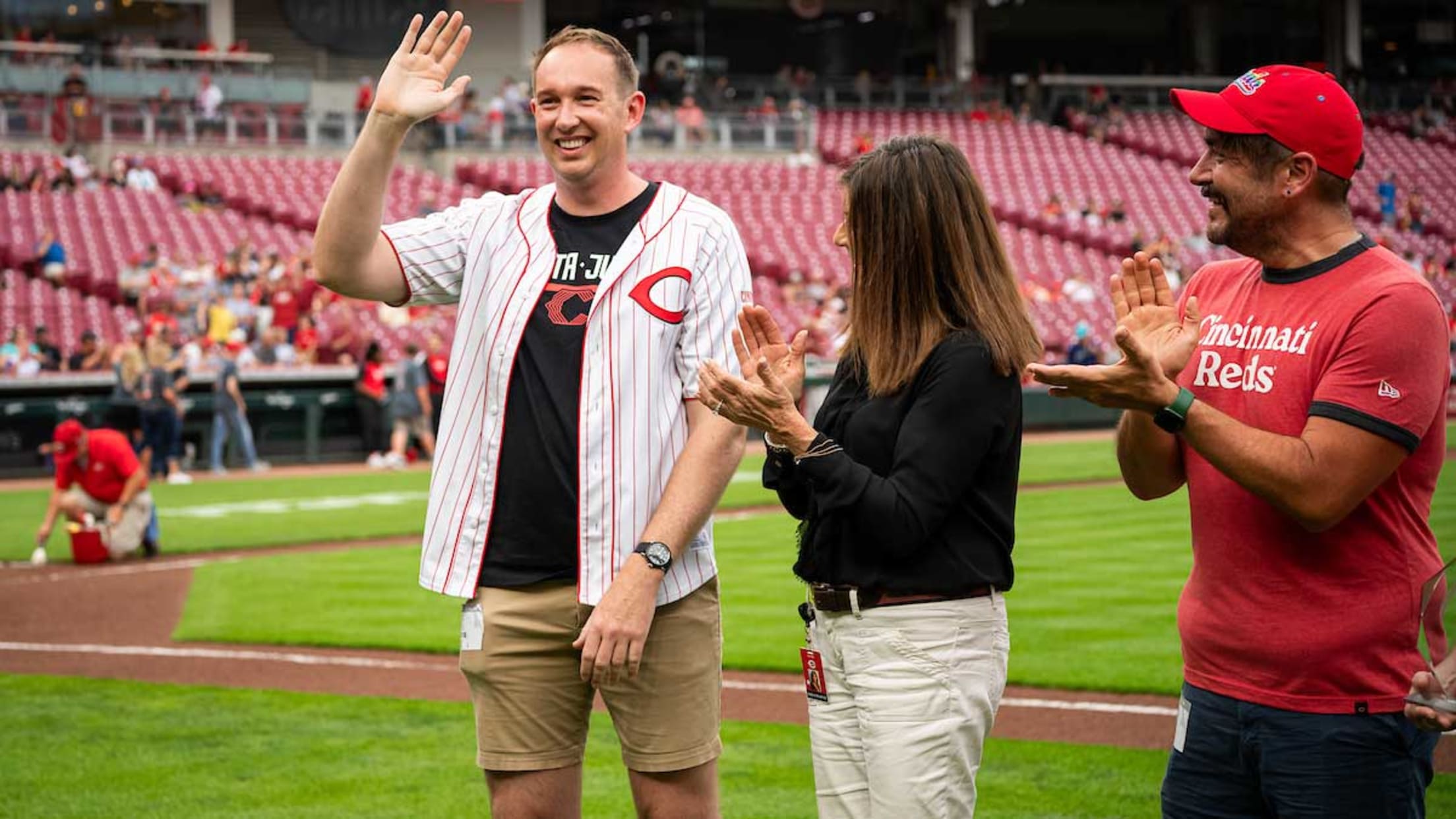 Pregame festivities also featured representatives from Cincinnati Children's Hospital, CancerFree Kids and the Dragonfly Foundation, with an 11-year-old cancer survivor throwing out a first pitch.