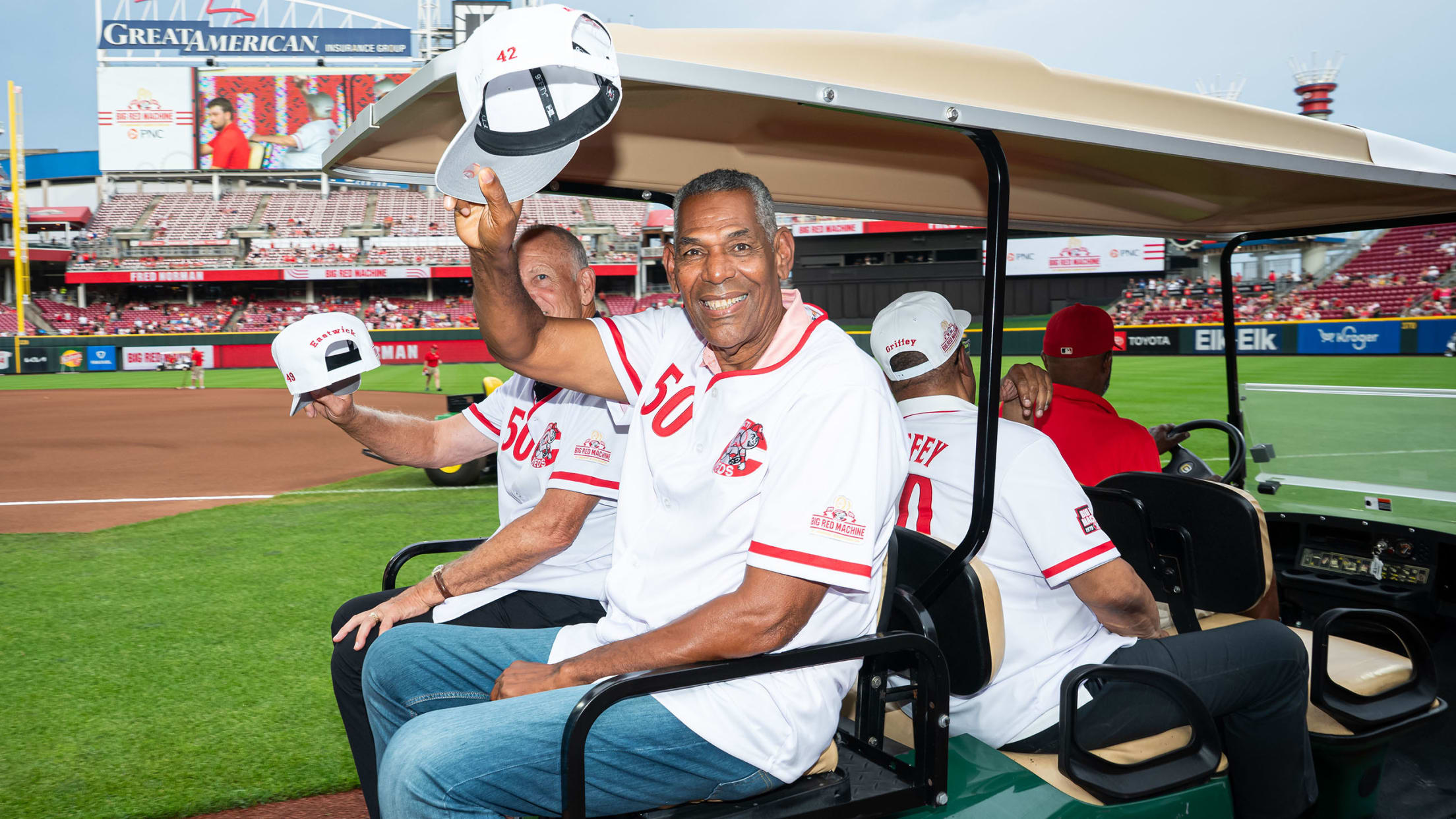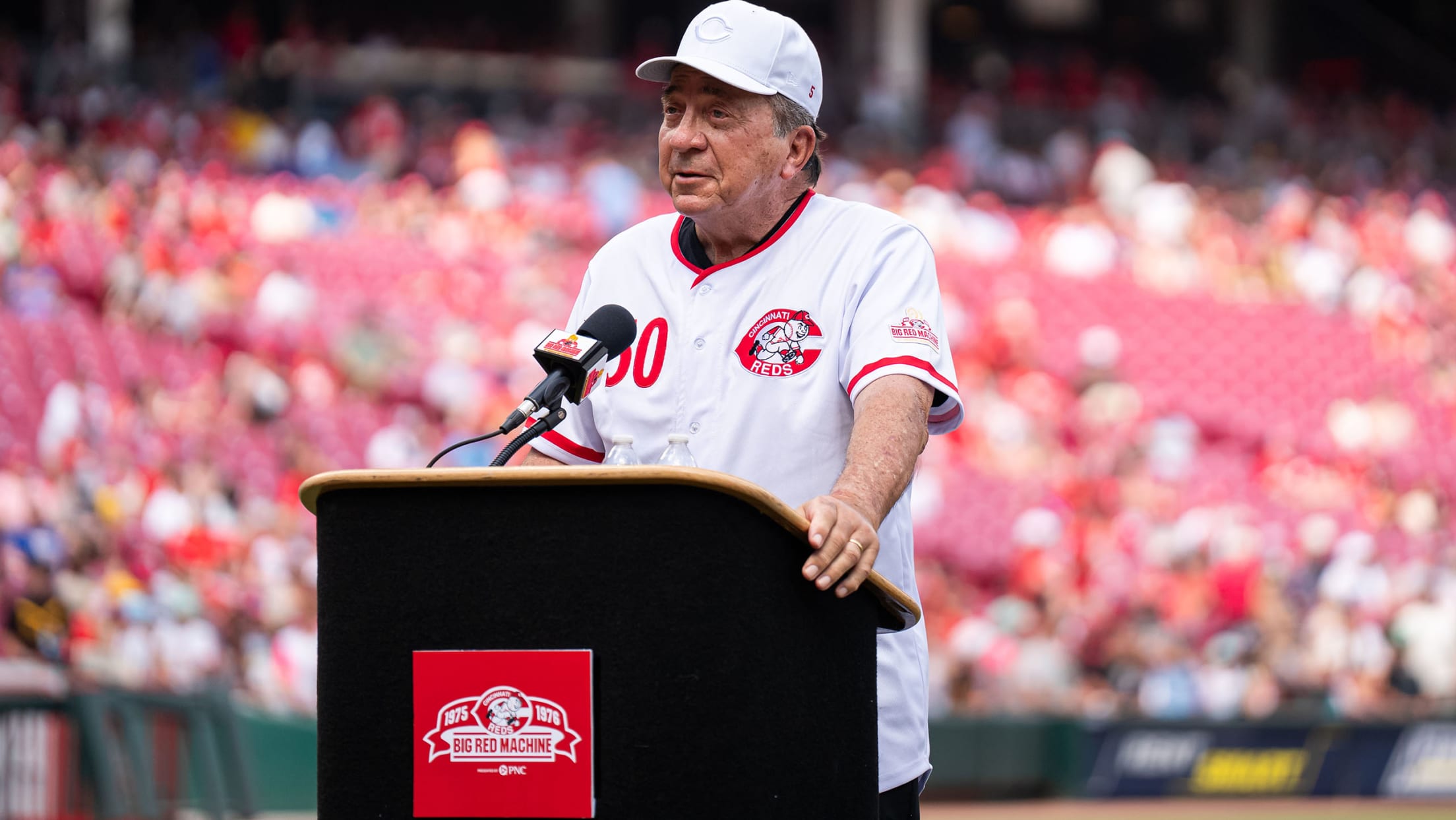 On June 27, the world champs participated in a parade around the warning track of Great American Ball Park before the Reds beat the Padres. On June 28, which was Big Red Machine 50th Anniversary Night presented by PNC, there was a pregame ceremony hosted by Brennaman which included a speech on behalf of the players given by Hall of Famer Johnny Bench. Tributes to the Big Red Machine were featured throughout the game, and fans who arrived early enough had the opportunity to take home a Big Red Machine Anniversary Cap, courtesy of Fan Duel.