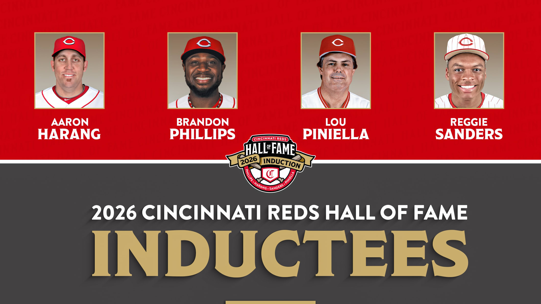 Second baseman Brandon Phillips, right-handed pitcher Aaron Harang, outfielder Reggie Sanders and manager Lou Piniella have been selected as the Cincinnati Reds Hall of Fame Class of 2026!