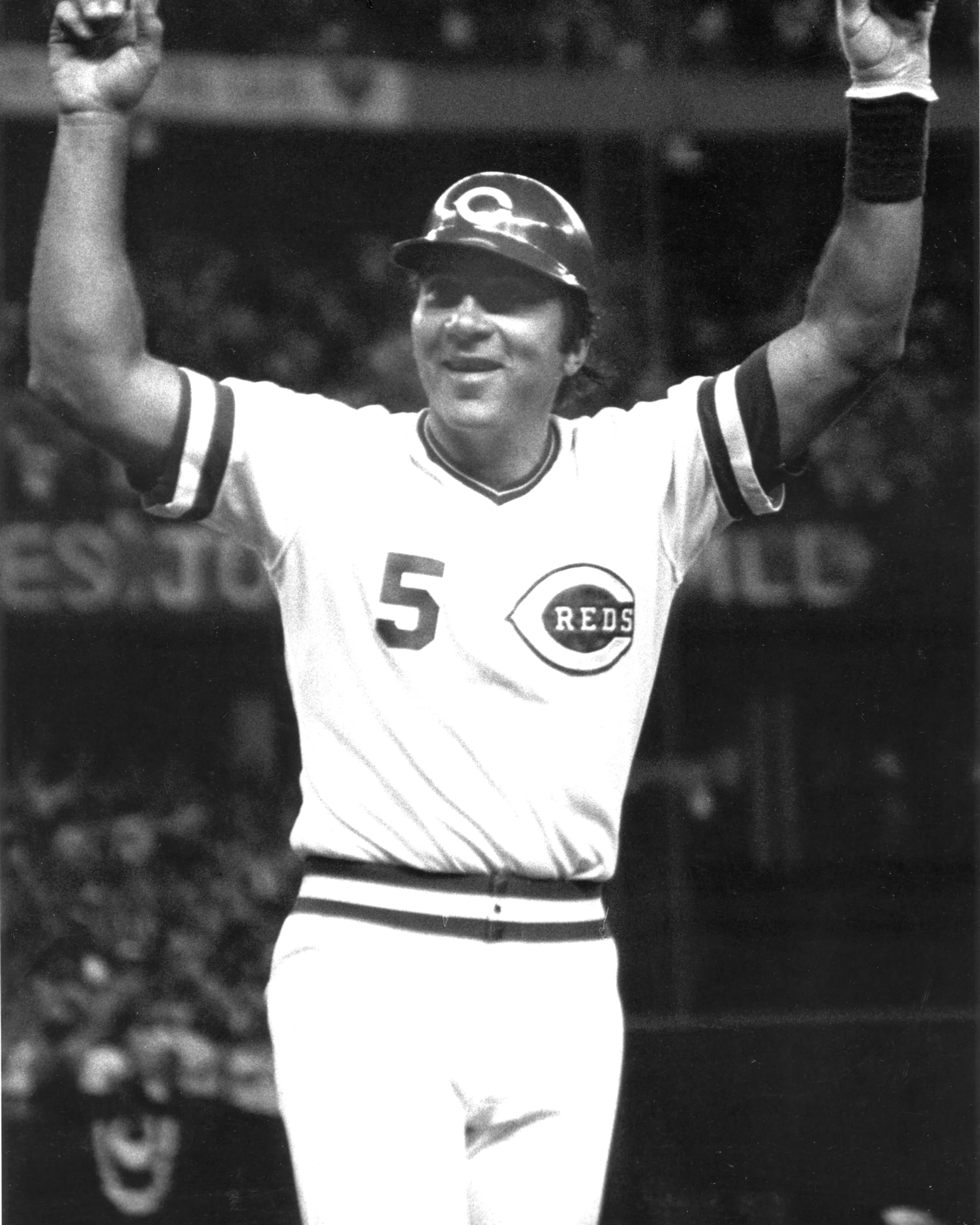 Pete Rose becomes the first Reds switch-hitter to homer from both sides of the plate in the same game.