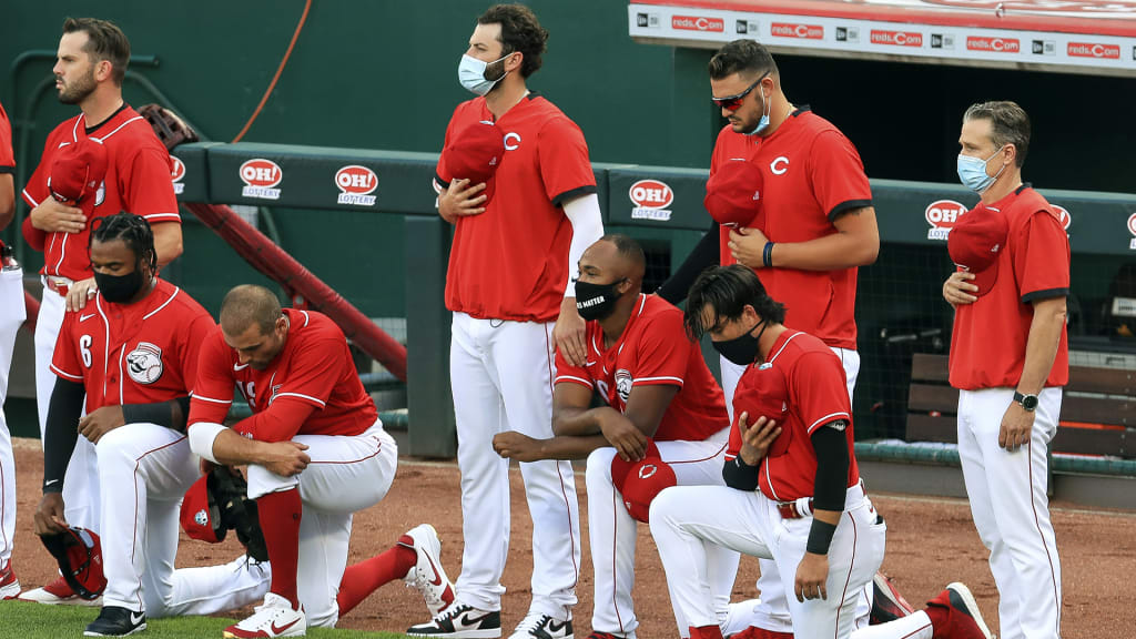 CINCINNATI -- When the Reds and Tigers stood on the lines ahead of Tuesday’s exhibition game for their first national anthem since baseball returned to play, four Cincinnati players took to one knee.