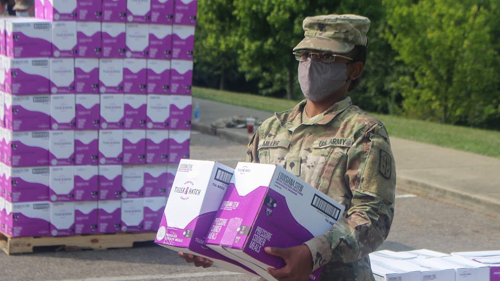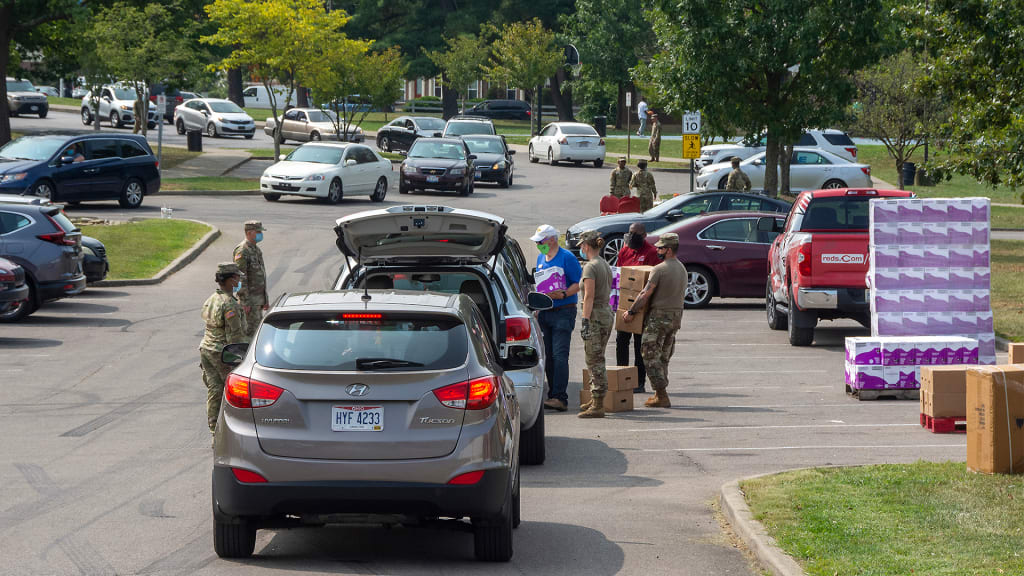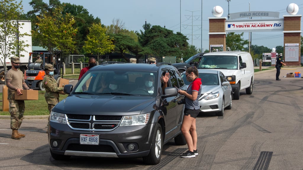Members of the Ohio National Guard, who have been stationed at the Freestore Foodbank since mid-March when the COVID-19 pandemic began, helped facilitate the distribution process. In addition, Reds employees, volunteers from the Freestore Foodbank and local law enforcement were on hand to help coordinate the event and load the boxes of food into each car.