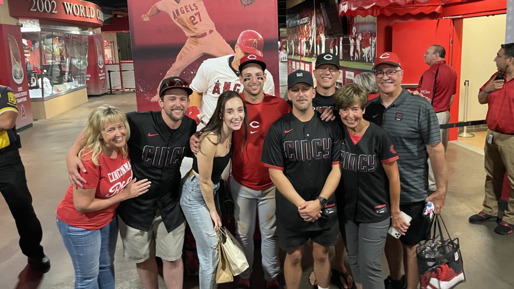 This past week, Steer's parents, Chris and Dana, and multiple members of their family had a different perspective watching the games. And this time, of course, their son wasn't watching with them because he was on the field playing either third base or left field for the Reds against the Angels.