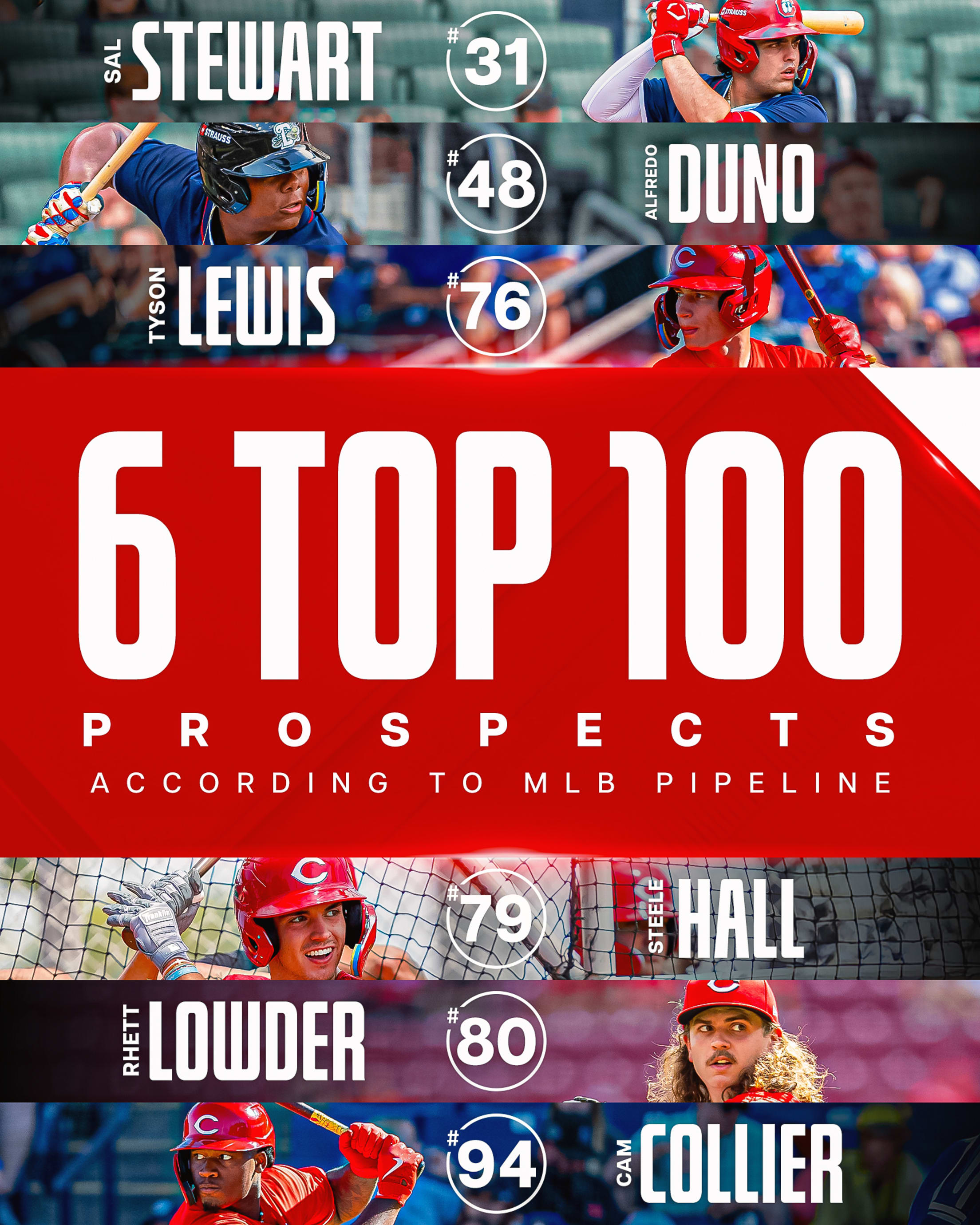 The Reds have six players currently ranked in MLB Pipeline's Top 100:
