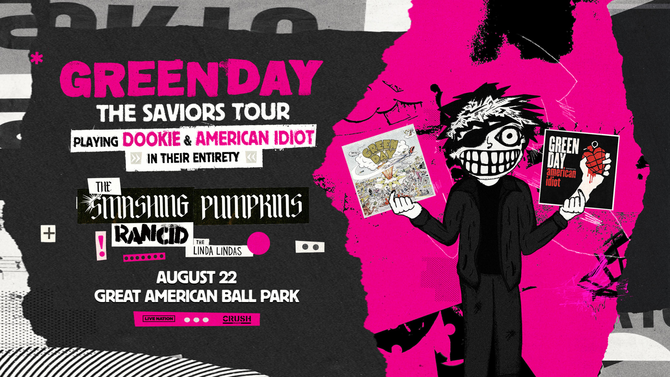The Saviors Tour will also feature The Smashing Pumpkins, Rancid and The Linda Lindas on its North American dates, including its stop on Thursday, August 22, 2024 at Great American Ball Park in Cincinnati!