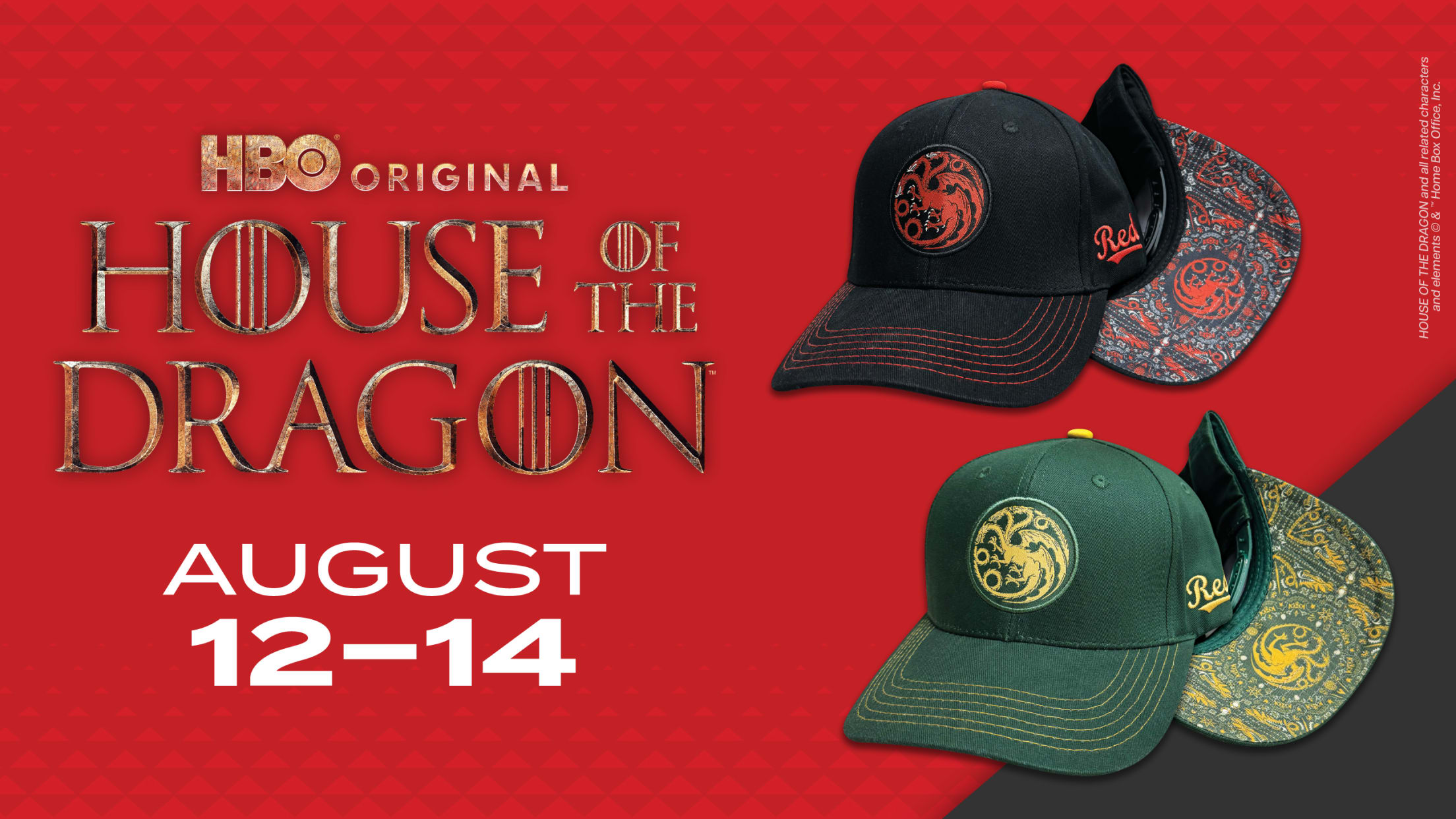 This special package includes your choice of either a black House Targaryen hat or a green House Hightower hat plus a ticket to your choice of games August 12-14.