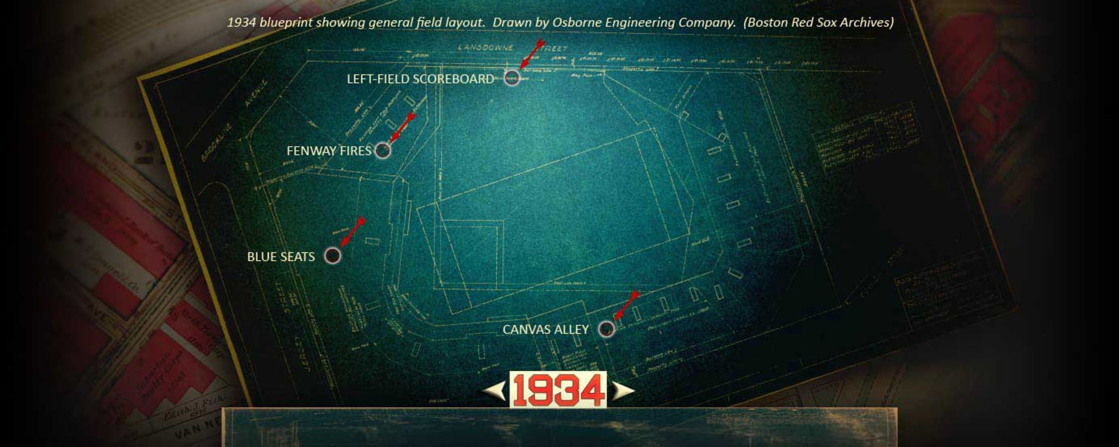 1934 blueprint showing general field layout. Drawn by Osborne Engineering Company. (Boston Red Sox Archives)