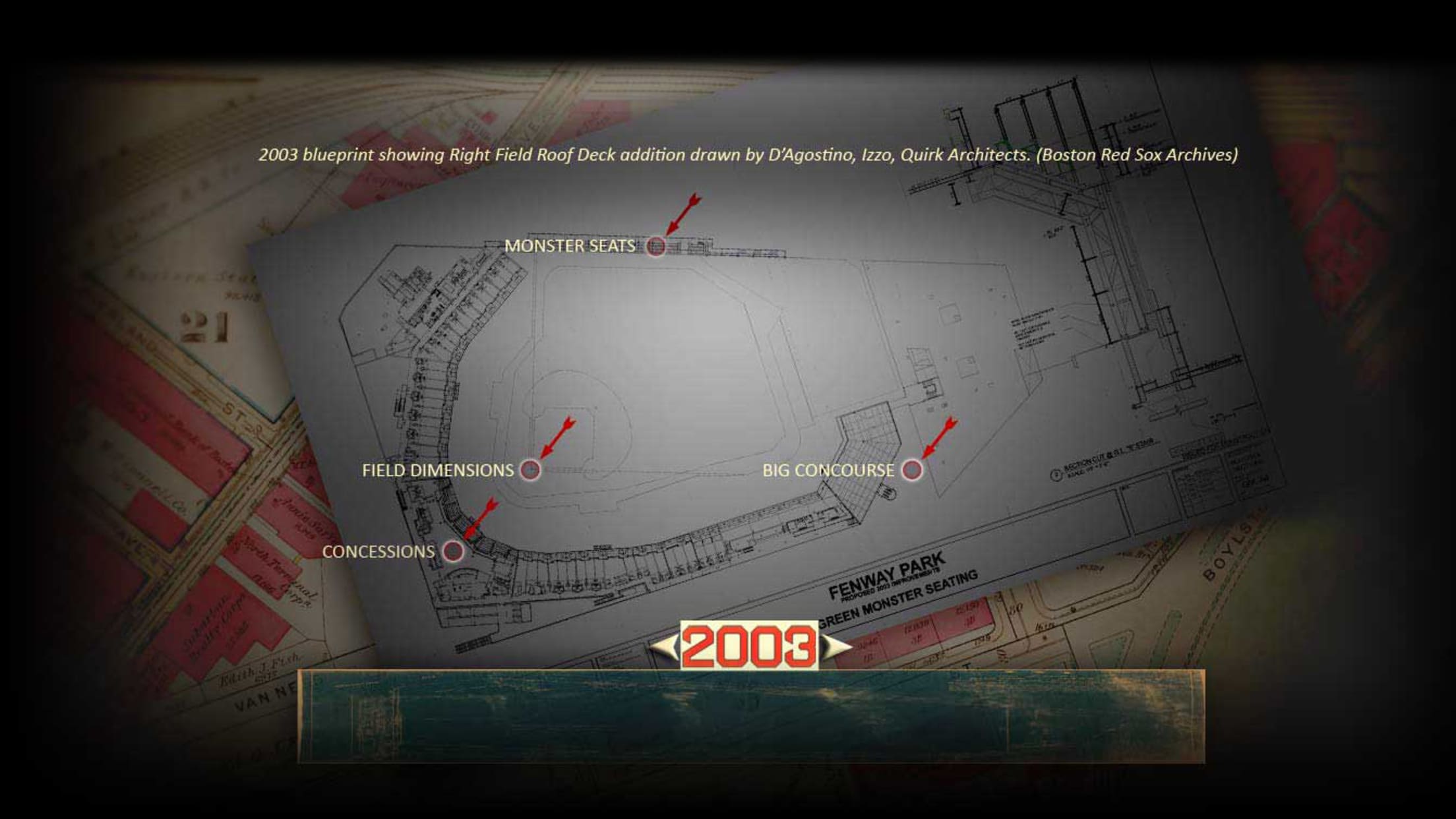 2003 blueprint showing Right Field Roof Deck addition, drawn by D'Agostino, Izzo, Quirk Architects (Boston Red Sox Archives)