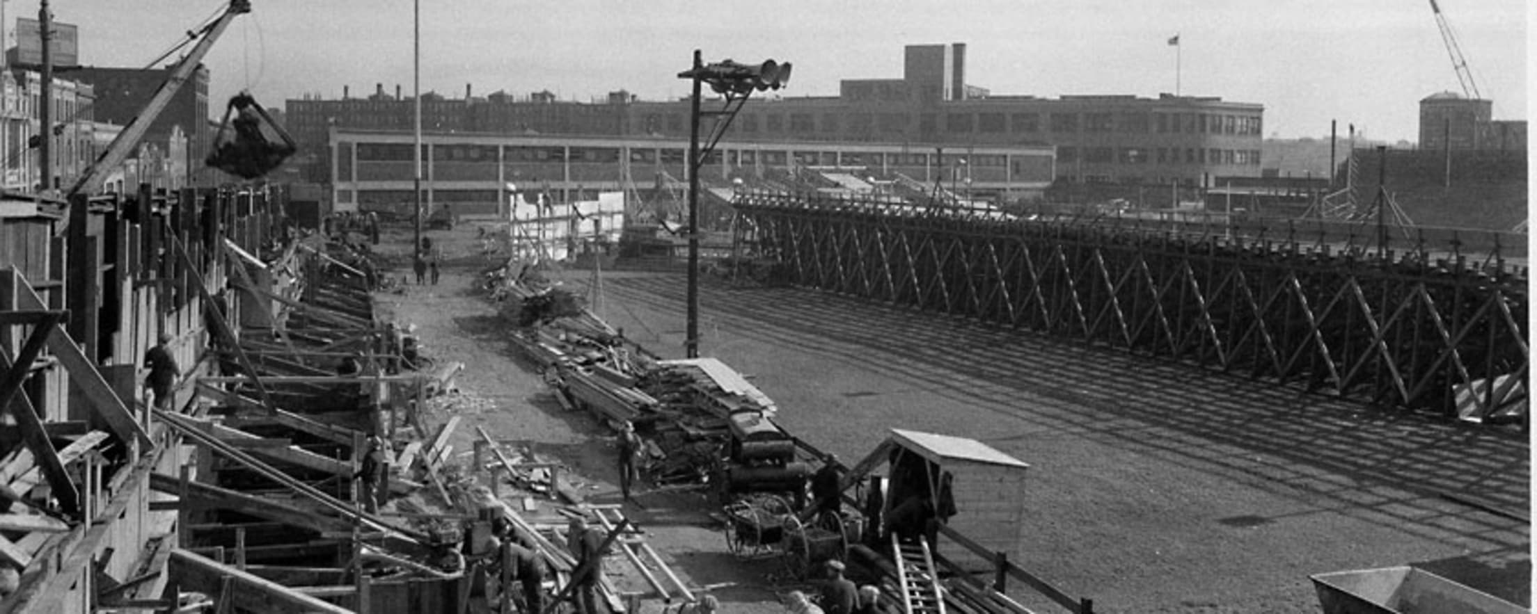Construction On Fenway Park's Left-Field Wall In 1933 (Credit: The Brearley Collection)