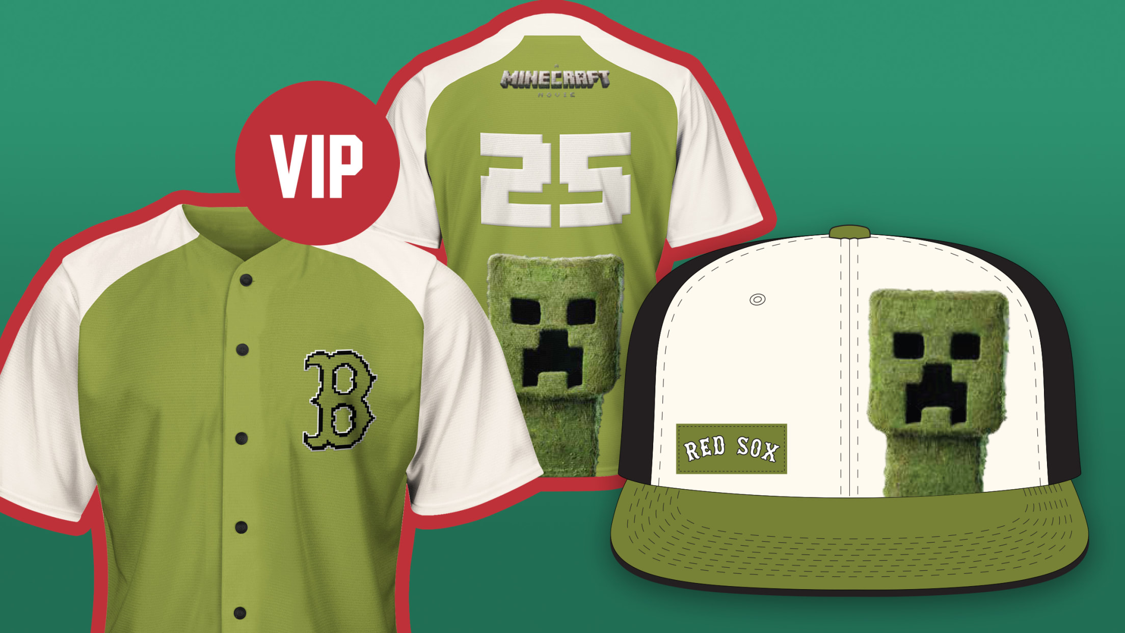 VIP packages include a custom A MINECRAFT MOVIE & Red Sox hat and A MINECRAFT MOVIE and Red Sox jersey! Jerseys come in sizes Adult S-XL with preferred sizes distributed on a first-come, first-served basis. Additionally, VIP ticket holders receive early entrance to have first access to the pregame entertainment.