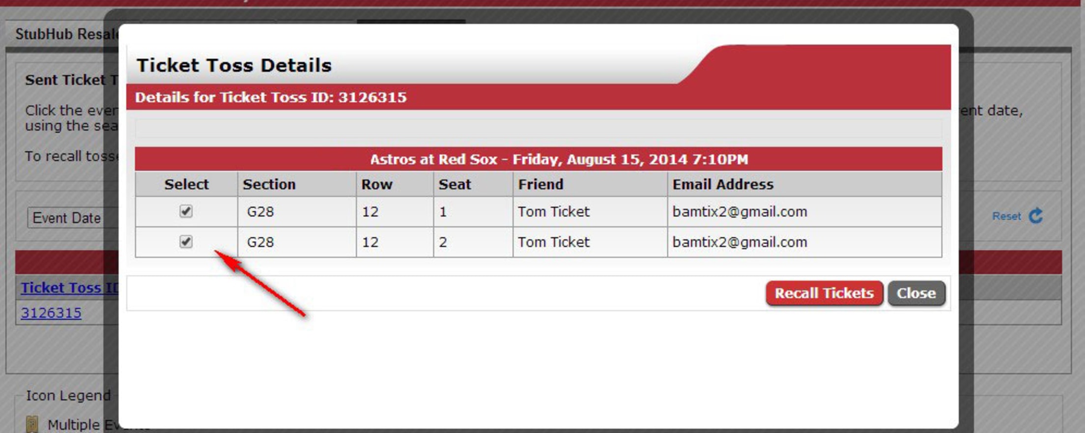 Now you can Recall previously tossed tickets meaning you can pull tickets back in to your account to resell, toss to a different friend, or print to enter the game! To Recall a ticket: