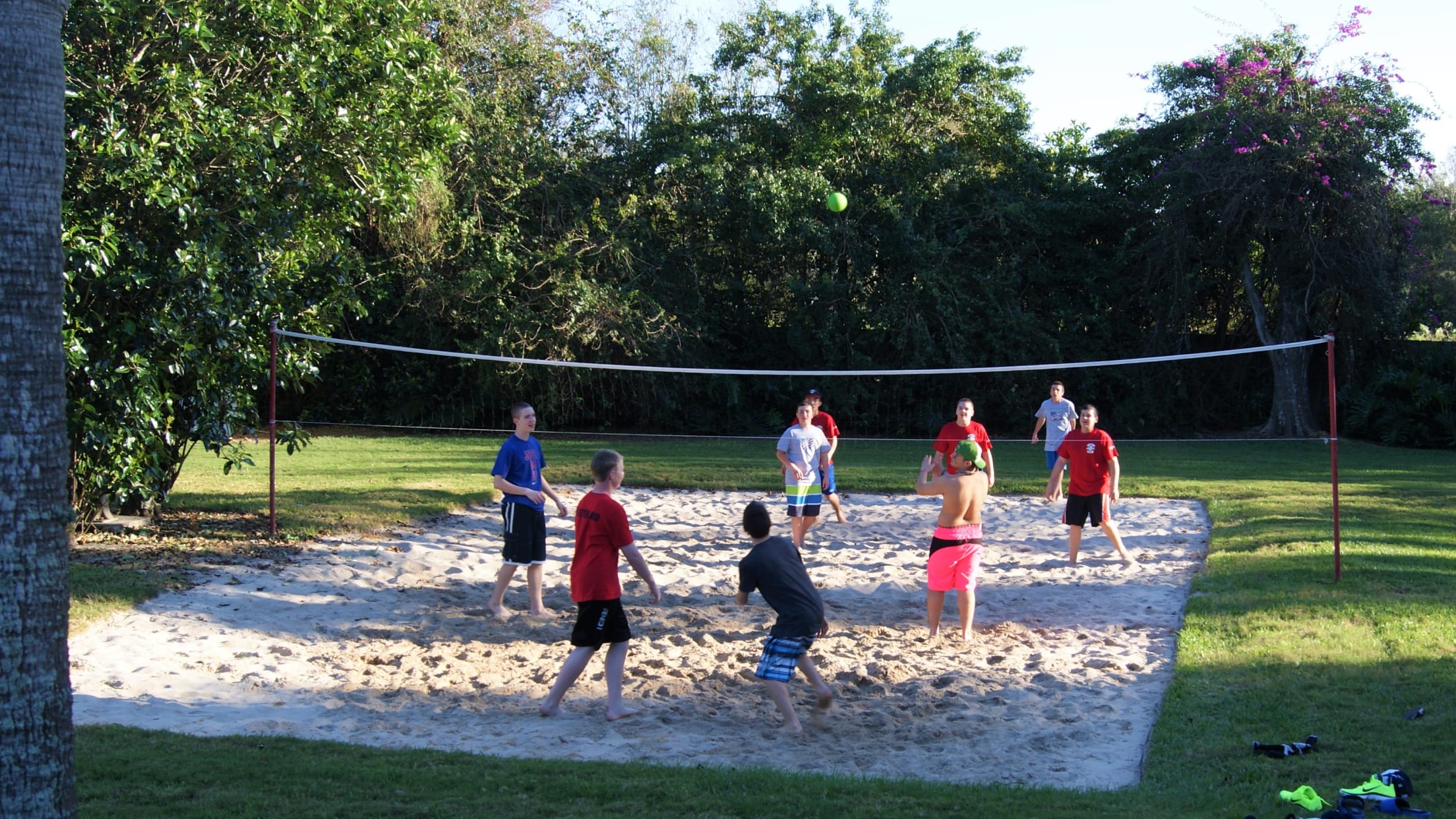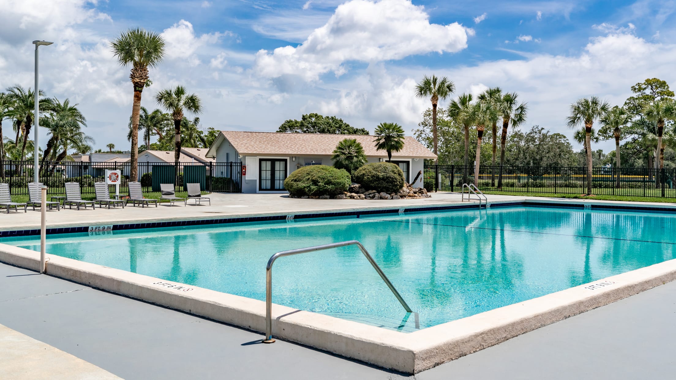 - Competition-size swimming pool with deck, lounge chairs and tables