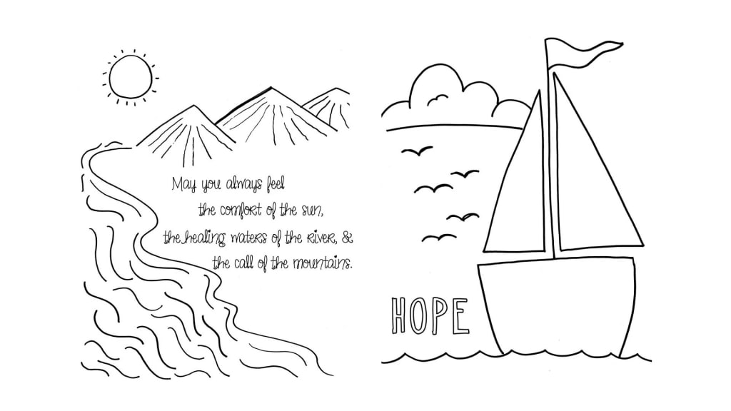 She developed a book that opened to easy-to-complete coloring pages with simple messages on the right and a mostly blank page on the left that asked the child to express thoughts and emotions.