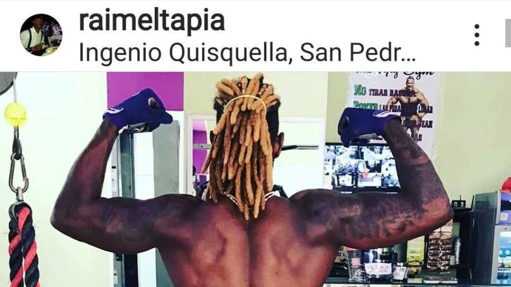 As evidenced by the above photo from his private Instagram (shared with his permission), Tapia arrived with bigger arms and more defined muscle thanks to the program of fitness trainer Alex Madrigal in San Pedro de Macoris, Dominican Republic.