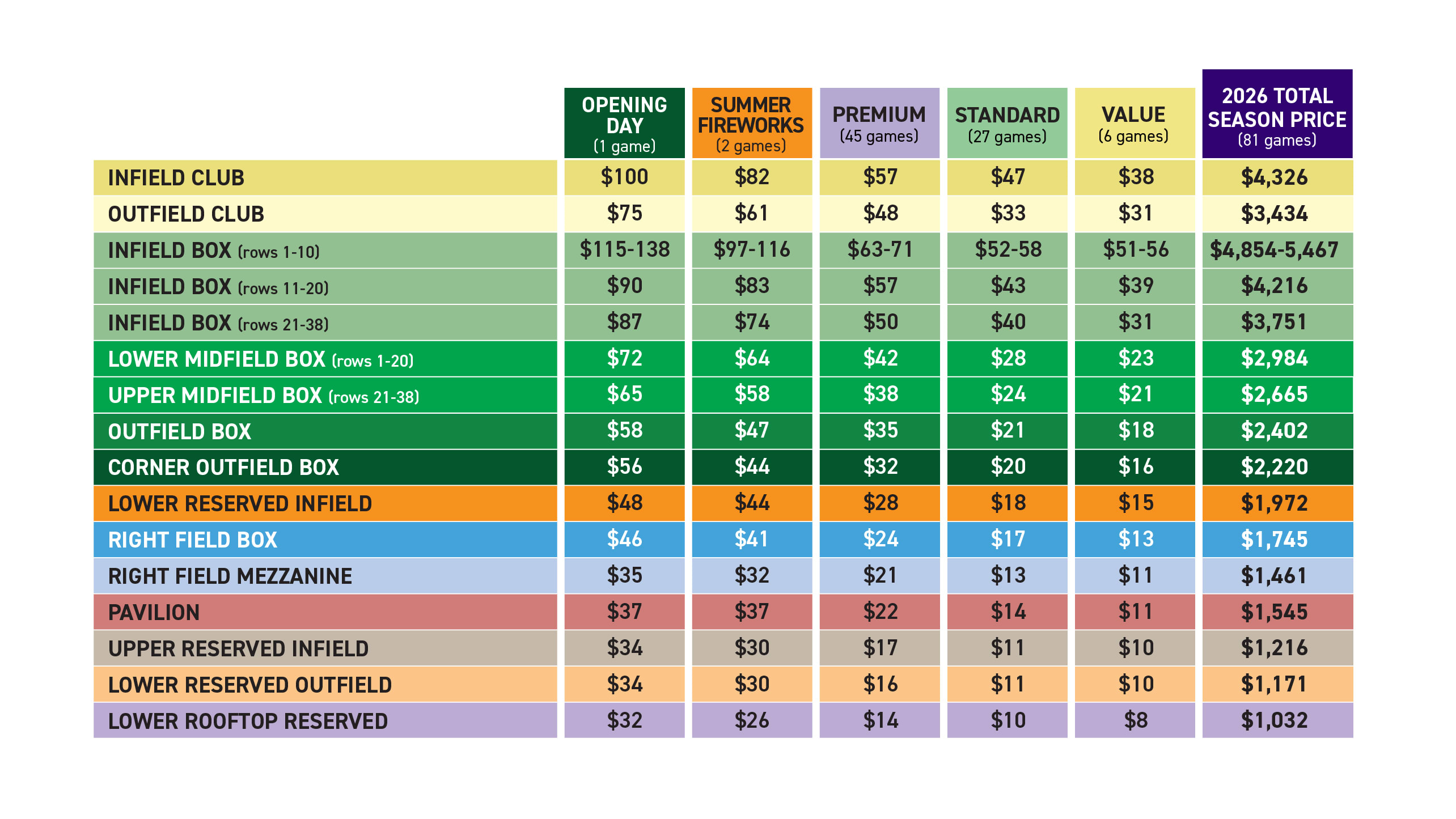 2026 Season Ticket Pricing