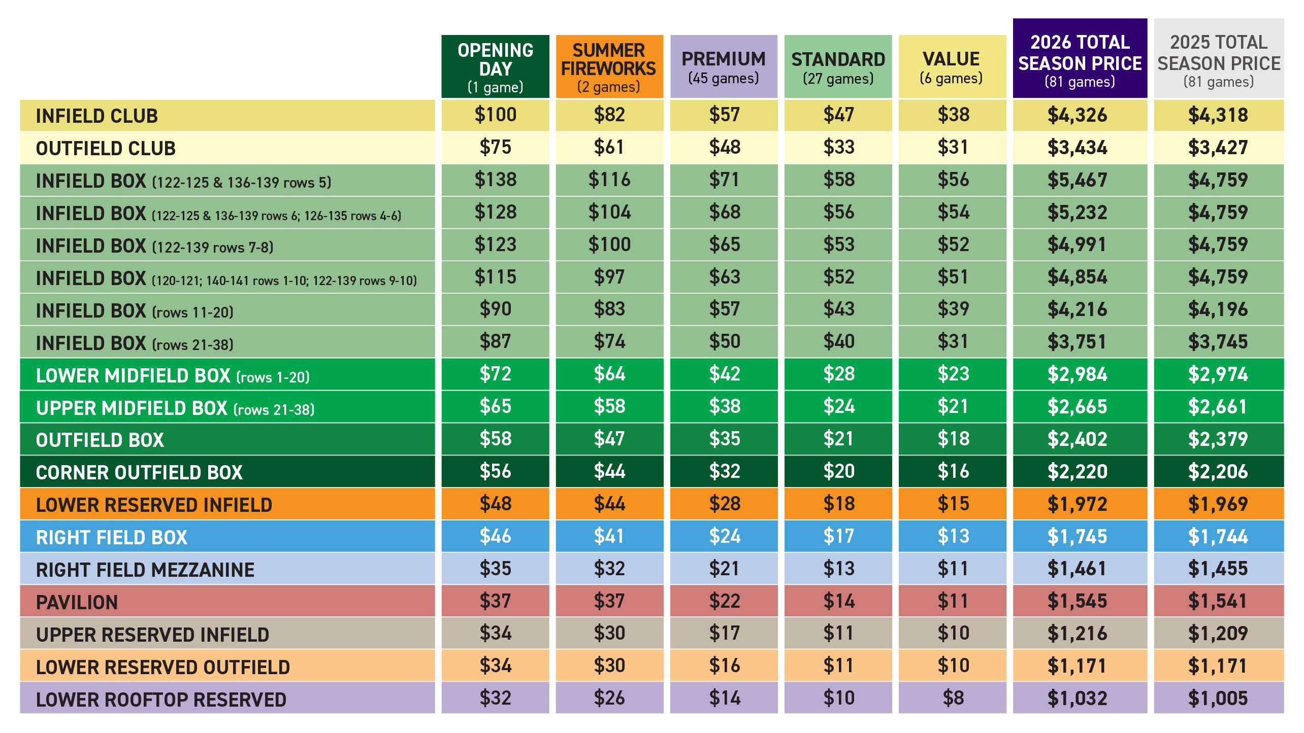 2026 Season Ticket Pricing