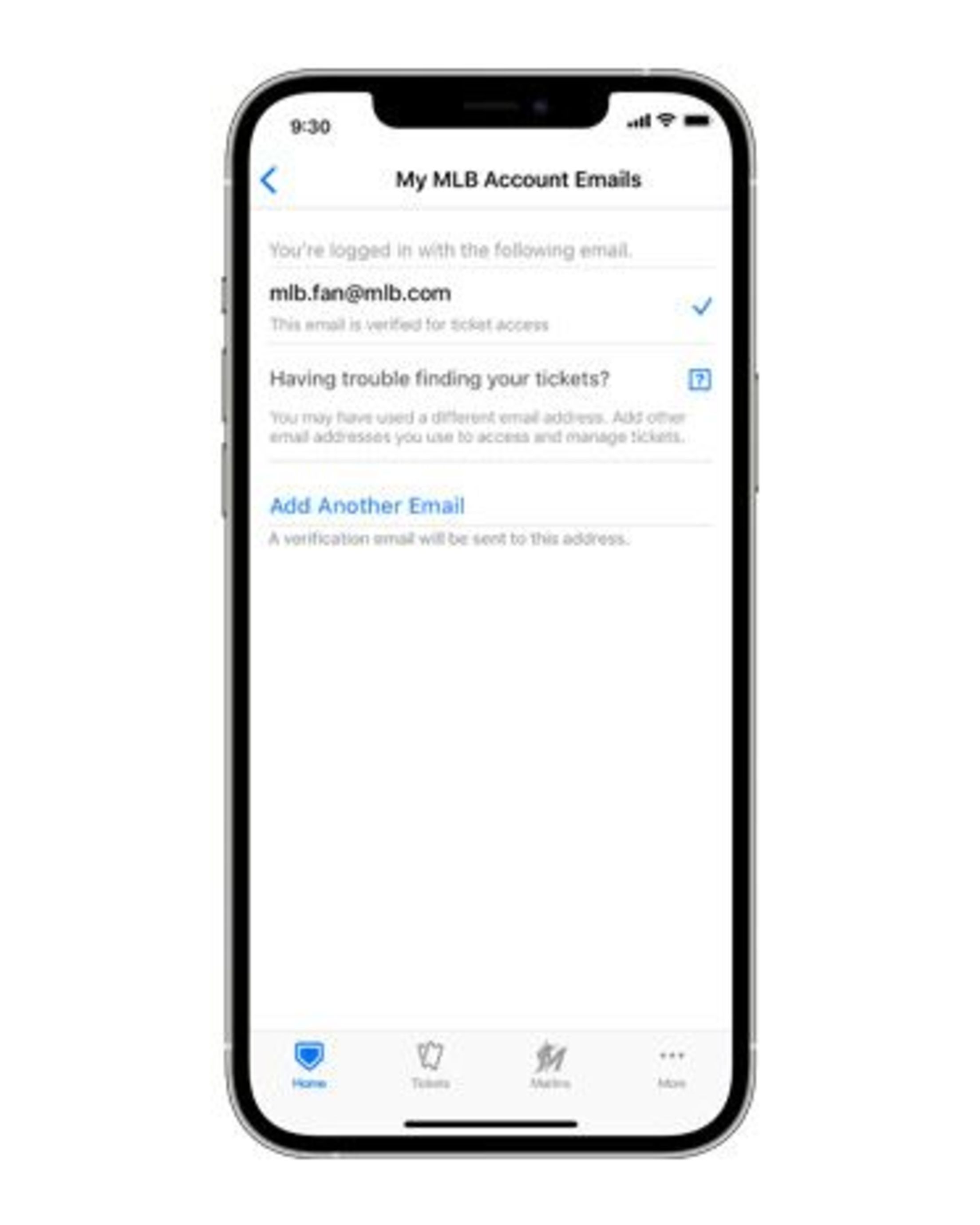 - You may need to verify your email address if this is your first time accessing your tickets in the MLB Ballpark app. You can verify your email address by tapping the Settings gear from the top right hand corner of the Today tab, tapping on MLB Account, and tapping to send the verification email.