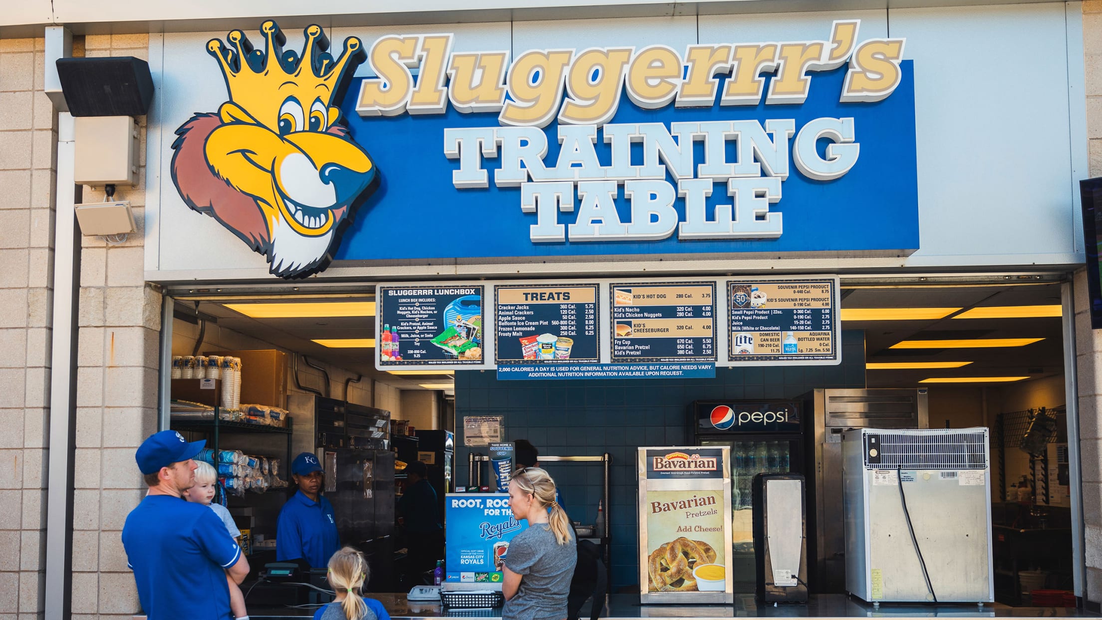 The outfield experience will have concession stands and beverage stands for your enjoyment. Look for Sluggerrr's Training Table located across from the Carousel, featuring a kids' menu for smaller appetites.