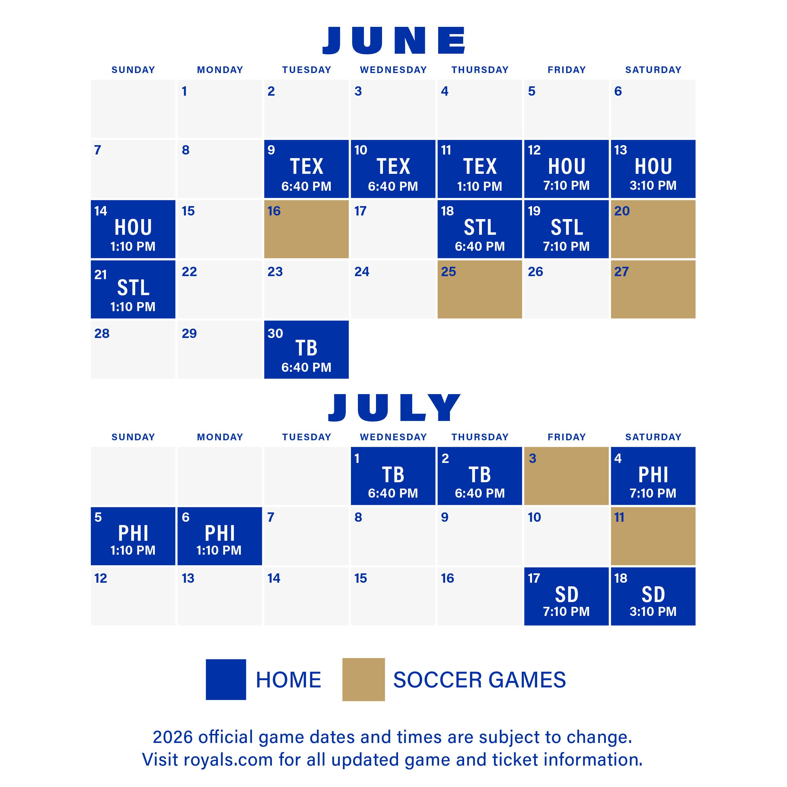 We’re thrilled to be neighbors to the first 2026 Global Soccer matches ever to be played here in Kansas City. And wouldn’t you know it, our baseball season runs throughout the summer, giving you the chance to see a completely different sporting atmosphere—there’s nothing quite like Royals baseball.