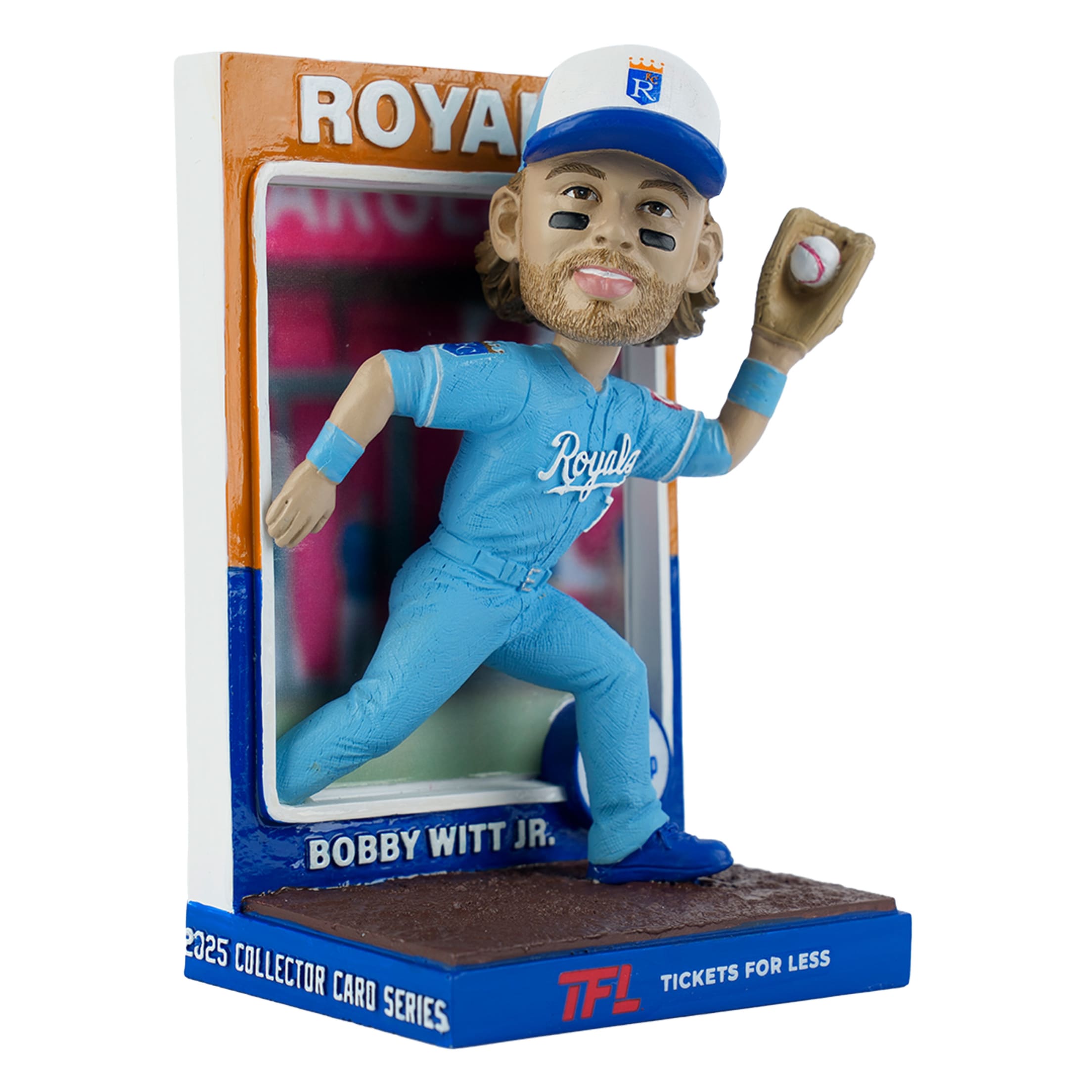Bobbleheads have a long history is baseball dating back to at least the late 1950's. The first versions were generic cherub faced "nodders" as they were sometimes called - although they did feature the uniforms and logos of specific MLB clubs. During the 1960's player specific models emerged, but still in the cartoonish body style. Bobbleheads returned to the game by storm in the late 1990's and early 2000's to become a ballpark favorite once again - this time they started to take on a much more real-world likeness with a multitude of poses and specialty designs. The Royals started their bobblehead tradition during the 2002 season and the line-up has continued to grow ever since. These bobbleheads represent the Royals full roster so far with more added each season.