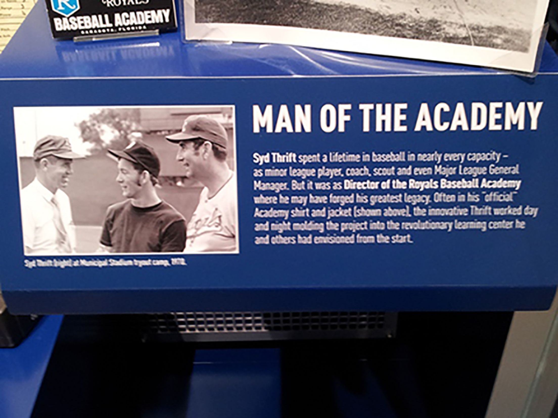 As director of the Royals Baseball Academy, Syd Thrift worked "day and night molding the project into the revolutionary learning center he and others had envisioned from the start."