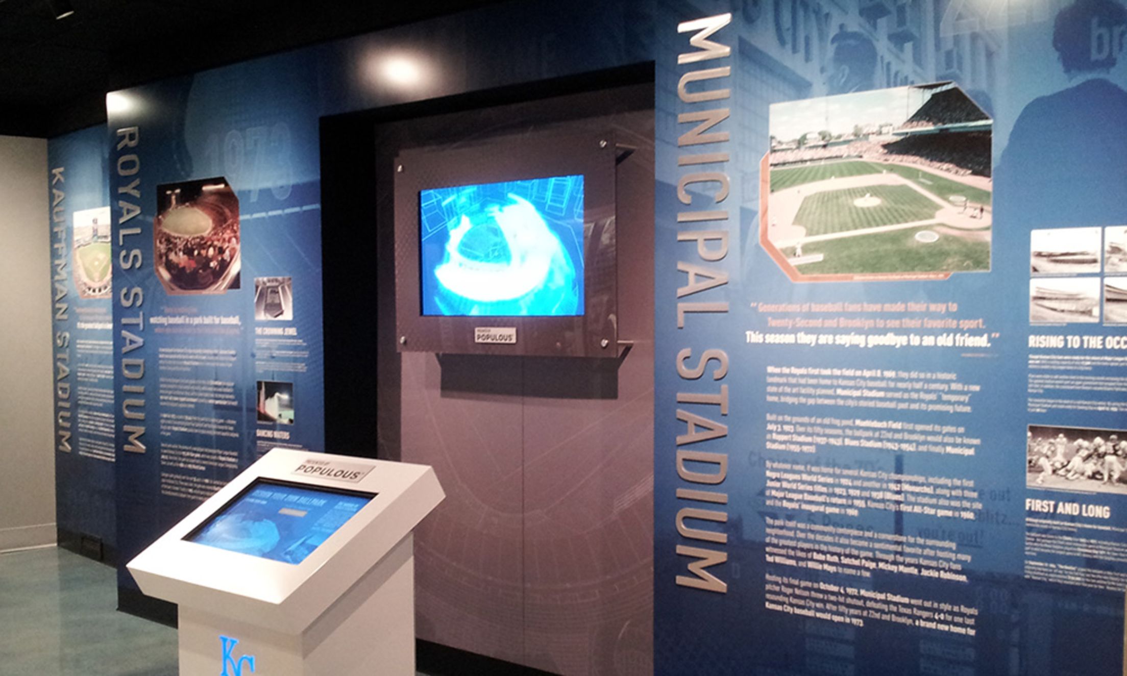 An exhibit showing the history of the Royals' home stadiums. - Royals