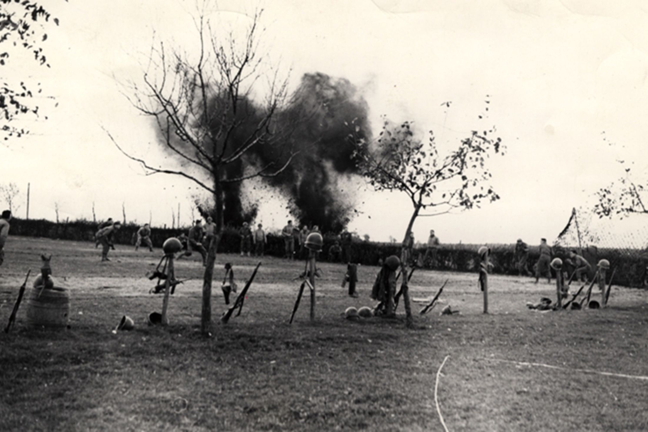 This photo shows that even nearby shelling didn't stop some games for United States servicemen in France. - National Baseball Hall of Fame & Museum