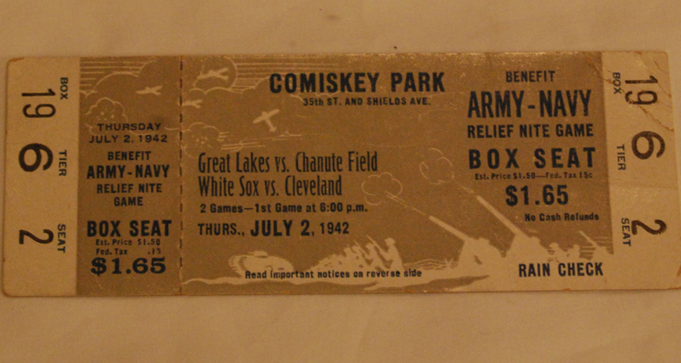 This Army-Navy benefit featured an armed services game between two service bases before the Cleveland Indians played the Chicago White Sox at Comiskey Park on July 2, 1942.