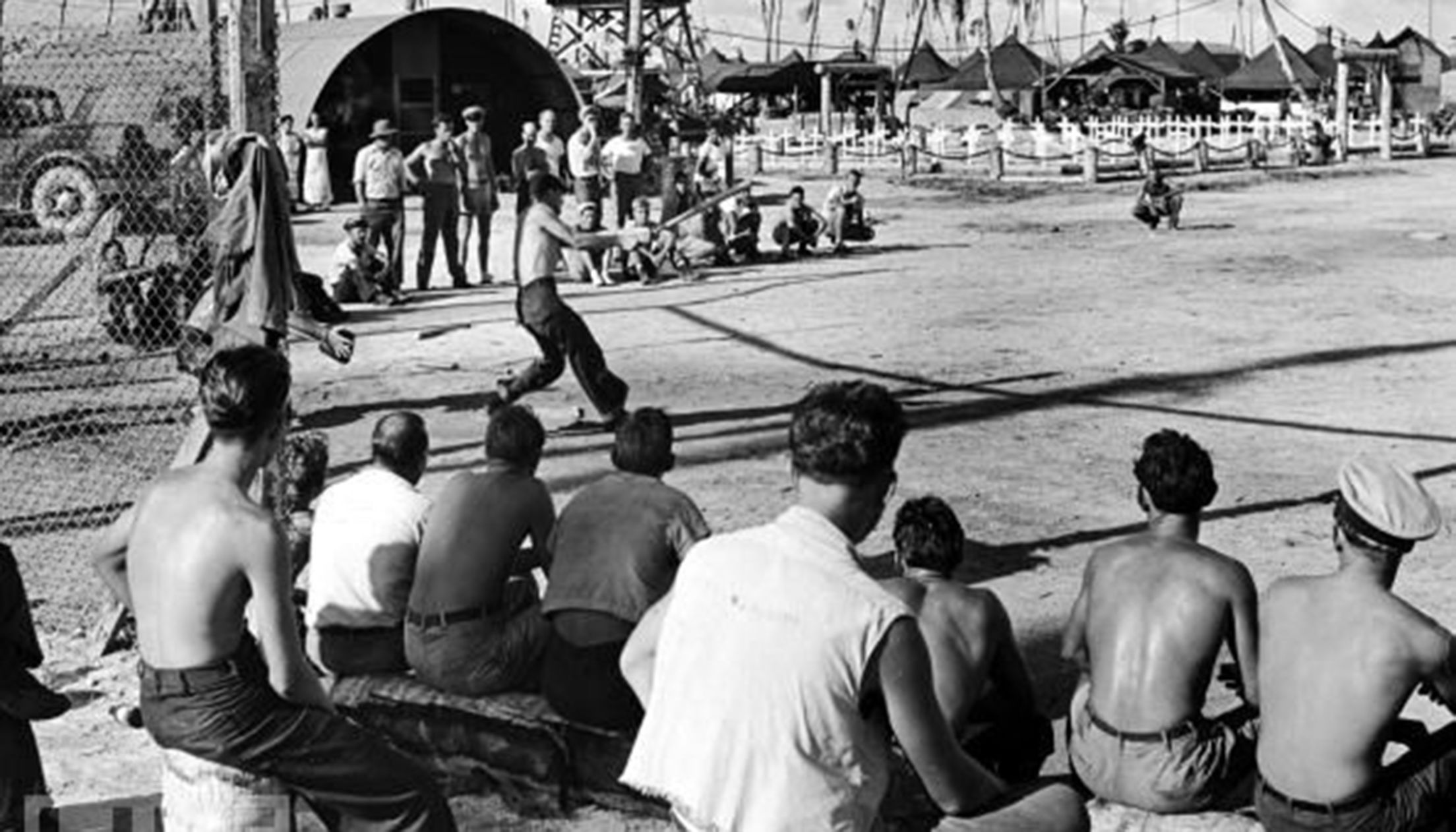 There were two fronts for the United States in World War II -- one in Europe and the other in the Pacific. This photo shows that baseball found its way into the Pacific theater of operations.