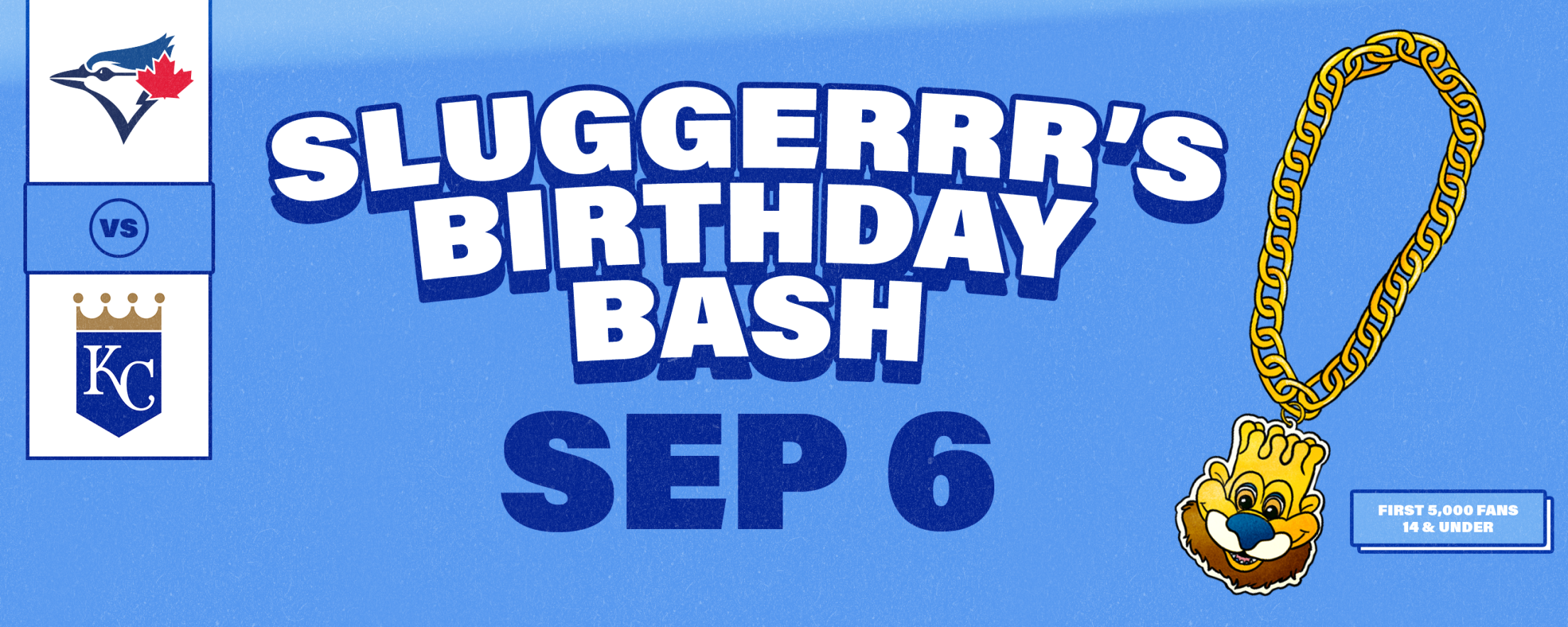 Join us at The K for Blue Jays vs. Royals on Sunday, September 6, at 6:20 pm. Be one of the first 5,000 fans (14 and younger) to receive a Big Bling Birthday Bash Chain.