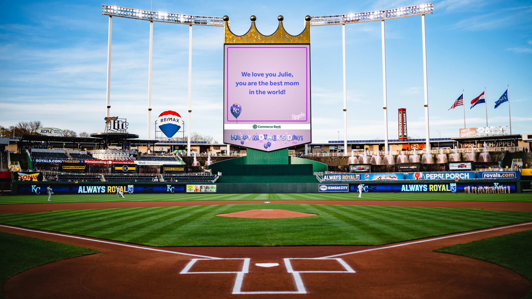Celebrate a mother in your life by placing a personalized message on Royals Crown Vision. Submit your complimentary special message using the link below by Friday, May 8th at 5 p.m. CT. We will then take a photo of the message on Crown Vision and email the keepsake to you by Mother’s Day on Sunday, May 10. There are a limited number of spaces available and we will fulfil submissions on a first come, first serve basis.
