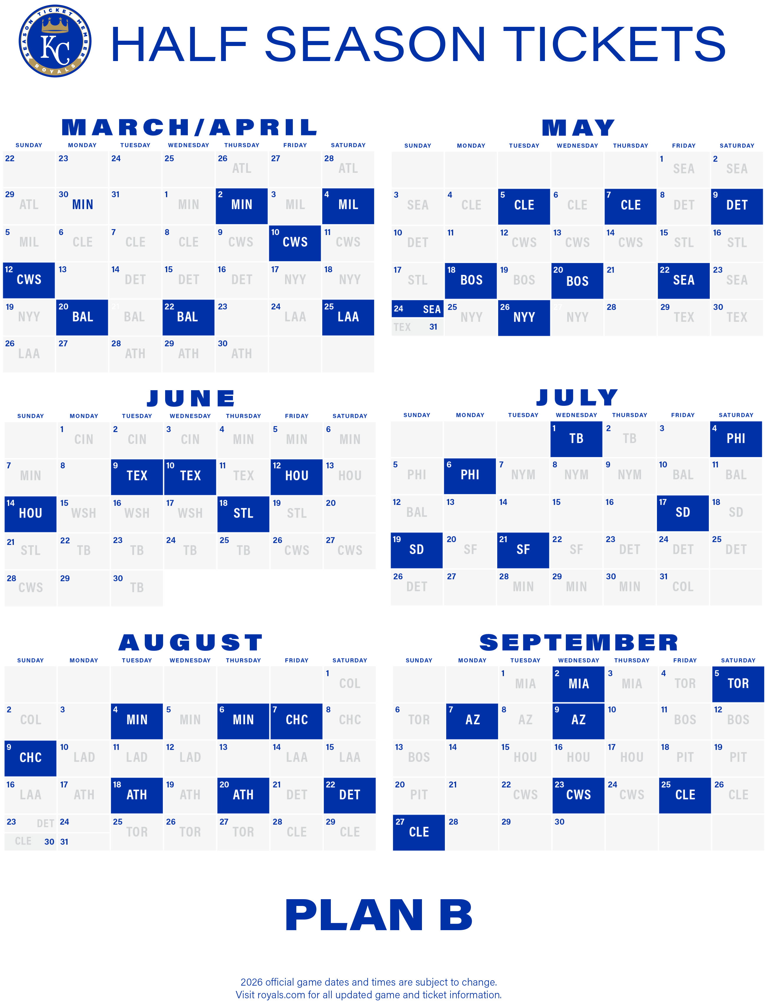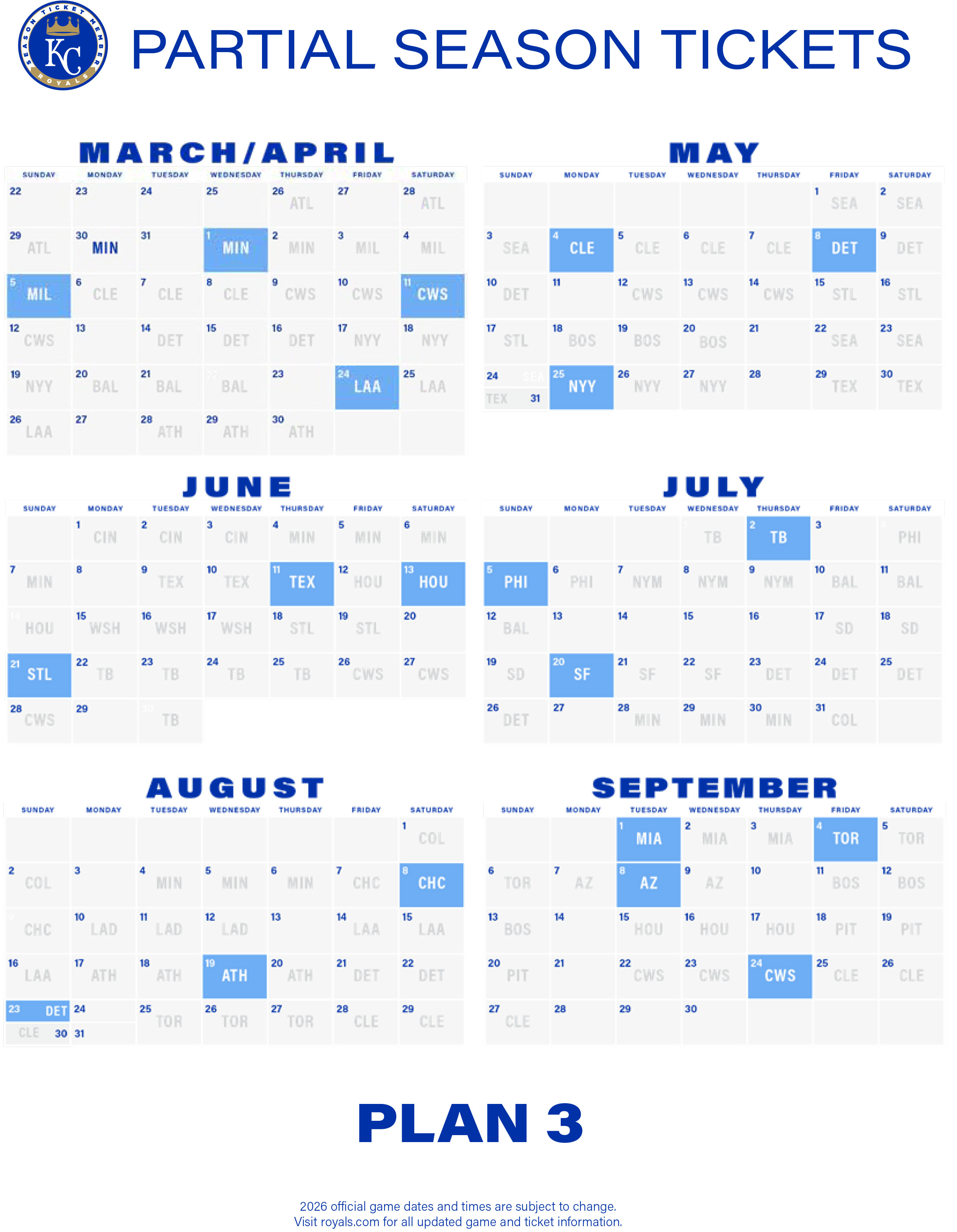 2026 Ticket Package Schedules