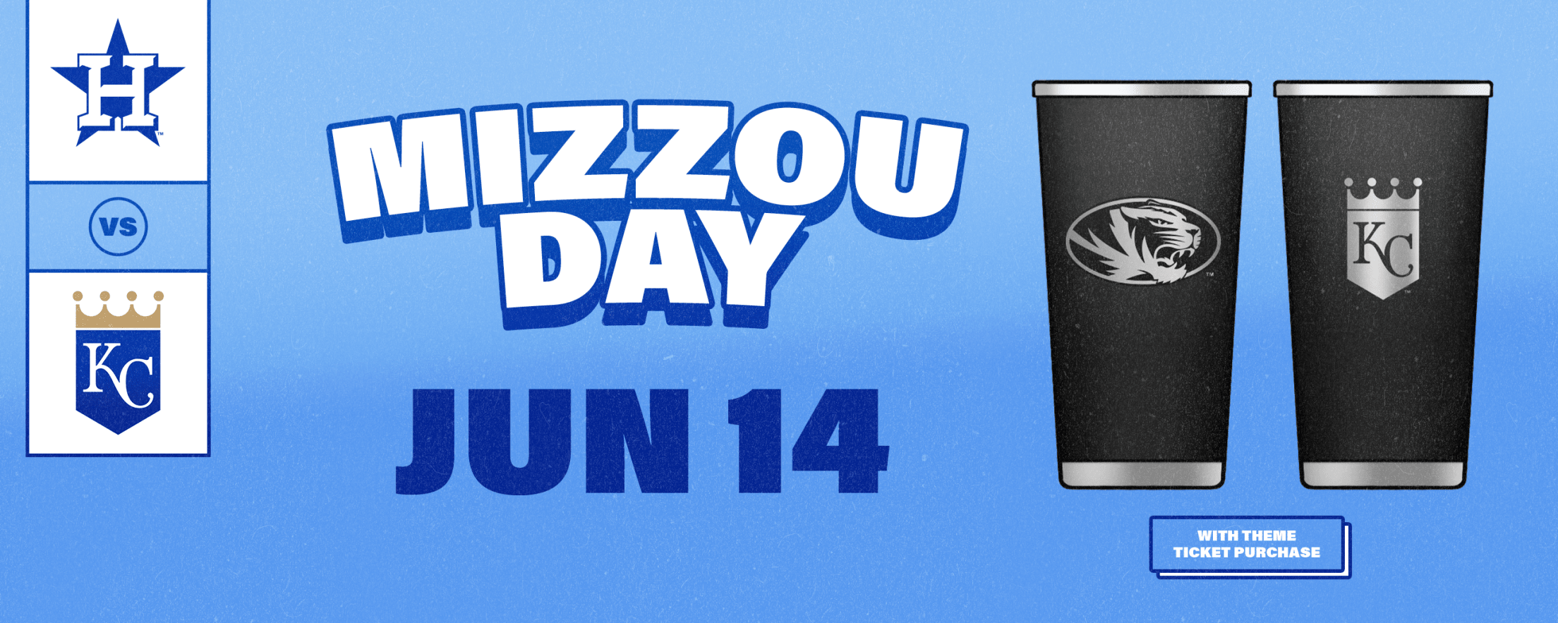 Show your Tiger spirit at The K on Sunday, June 14, when the Royals face off against the Houston Astros. With the purchase of a theme ticket, you'll take home a Royals x Mizzou tumbler.