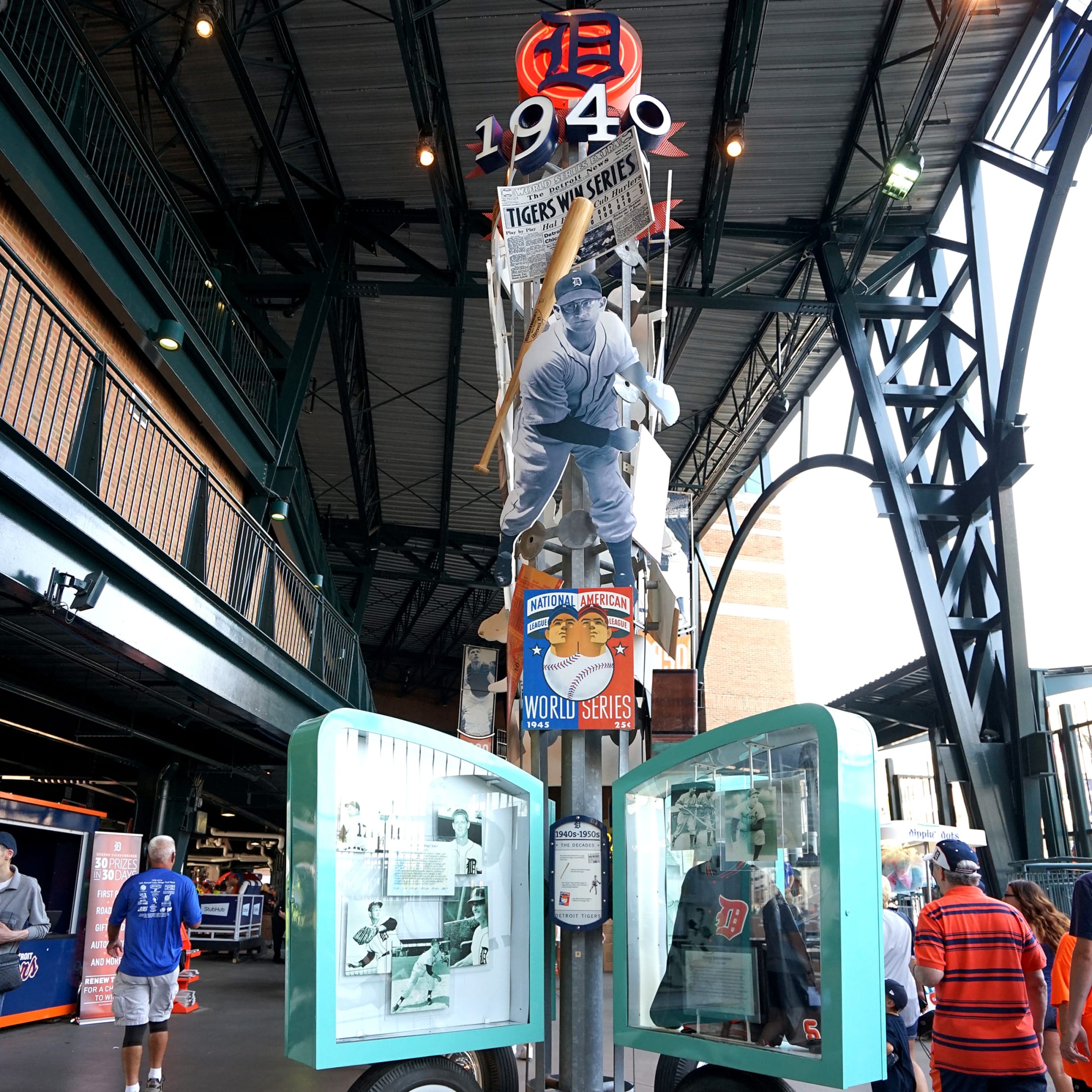 All through the main concourse, guests can enjoy the Tigers "Walk of Fame," a historical display that envelops the circumference of the lower level. Historical elements celebrating the Tigers rich history from the 1800s to the present take guests on a trip through time, punctuated by six large "decade bats" that denote each era in Tigers baseball with artifacts, photos and display cases.