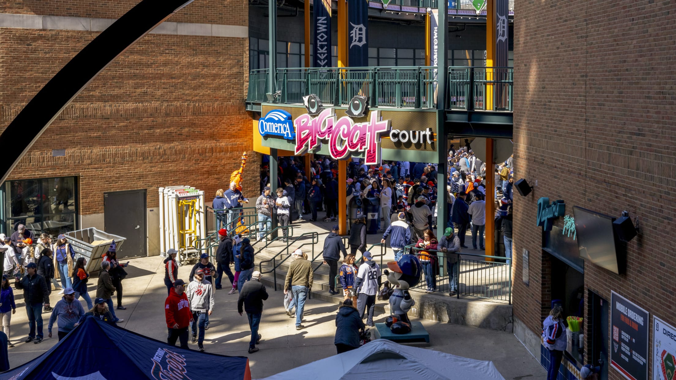 Located near Section 119, this area is designed in a circular fashion and features a variety of food choices including Little Caesars pizza, National Coney Island, elephant ears, ice cream, Guernsey Farms Dairy, French fries, old-fashioned handmade hamburgers, Mexican selections, Mediterranean selections, frozen daiquiris and other frozen soft drinks. The D Shop retail store is also accessible through the Comerica Bank Big Cat Court.