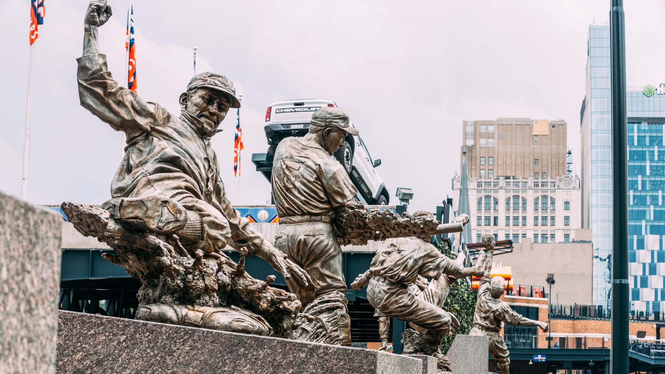 The Tigers celebrate six of their all-time great players with a series of unique statues located along the left centerfield wall. The statues are cast in stainless steel and capture the essence of some of the greatest Tigers in action--Ty Cobb, Charlie Gehringer, Hank Greenberg, Willie Horton, Al Kaline and Hal Newhouser. Each is perched atop a granite pedestal and reaches about 13 feet in height.