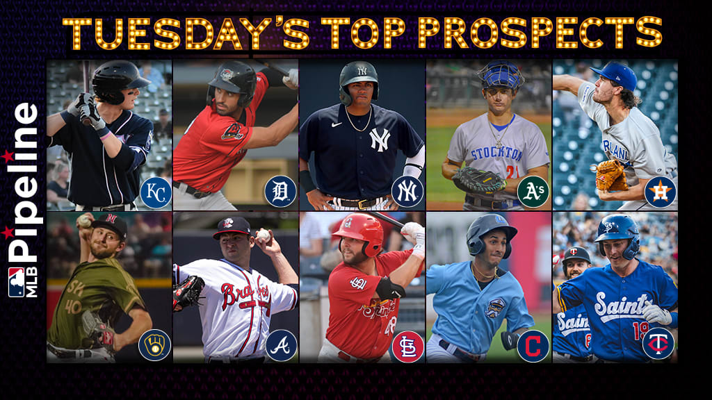 \n","providerName":"Twitter","providerUrl":"https://twitter.com","thumbnail_url":null,"type":"oembed","width":550,"contentType":"rich"},{"__typename":"Markdown","content":"**Athletics: Tyler Soderstrom, C (MLB No. 82), Low-A Stockton** \nThe top ranked A’s prospect extended his hitting streak to 13 games and recorded his seventh multihit performance over that span. Soderstrom laced a double down the line in right in the first, crushed a home run to center in the third and led off the sixth with a bloop infield hit. The backstop is sporting a .320 average and .986 OPS this season. Athletics prospect stats »","type":"text"},{"__typename":"Markdown","content":"**Astros: Peter Solomon, RHP (No. 12), Triple-A Sugar Land** \nSolomon was unhittable through six of the seven innings he pitched, racking up eight strikeouts along the way. With a 3-0 lead, Solomon gave up a double to begin the top of the seventh, followed by a strikeout and a wild pitch to allow Tacoma’s first run of the game to cross the plate. A fourth-rounder in the 2017 Draft, Solomon’s seven innings were a season high. The righty has tallied 53 strikeouts through 46 1/3 innings in Triple-A. Astros prospect stats »","type":"text"},{"__typename":"Markdown","content":"**Brewers: Alec Bettinger, RHP (No. 23), Triple-A Nashville** \nBettinger bounced back from a rocky start in his last outing in a triumphant way, tying his career high in strikeouts with 12 over six scoreless innings of five-hit ball. It’s the third Minor League outing this season that Bettinger didn’t issue a free pass, and the 2017 10th-round Draft pick is pitching to a 2.78 ERA with 43 strikeouts and eight walks across 35 2/3 innings (nine appearances) in Triple-A. Brewers prospect stats »","type":"text"},{"__typename":"Markdown","content":"","type":"text"},{"__typename":"Markdown","content":"**Braves: Jared Shuster, LHP (No. 6), High-A Rome** \nShuster is coming off a strange outing where he didn’t allow a hit through five, but gave up one earned run on a steal of home plate. Needless to say, Shuster’s outing on Tuesday was a bit more orthodox, as the southpaw struck out five over four scoreless innings of one-hit ball. The 25th overall pick in the 2020 Draft, Shuster has a 2.89 ERA and a 0.85 WHIP through 28 innings. Braves prospect stats »","type":"text"},{"__typename":"Markdown","content":"**Cardinals: Alec Burleson, OF (No. 15), Double-A Springfield** \nThe 15th-ranked Cardinals prospect extended his hitting streak to five games while notching his fourth multihit effort in that span. Burleson collected three knocks -- including his 16th homer of the year -- and drove in four runs. The 22-year-old blasted a go-ahead grand slam to right-center in the eighth inning. He also singled in the fourth and sixth. Burleson is 11-for-22 with five homers, 11 RBIs and eight runs scored over his past five games. Cardinals prospect stats »","type":"text"},{"__typename":"Markdown","content":"**Indians: Brayan Rocchio, SS (No. 7), High-A Lake County \nLogan Allen, LHP (No. 22), Double-A Akron** \nWith his fourth multihit effort in six games, Rocchio raised his average 14 points -- from .257 to .271 -- after a perfect 4-for-4 night at the plate. It’s the second time in his career that he’s recorded four hits in a game, and Tuesday’s effort included two doubles. Rocchio scored two runs and drove in two, giving him 25 RBIs on the year, four shy of his career-high mark of 29 he set in his debut season in 2018.\n\nAllen continued his dominant season with his sixth scoreless outing of the year. The 2020 second-rounder (56th overall) made the most of his Double-A debut, striking out six and working around a pair of hits over four frames. With this outing, Allen lowered his season ERA to a sparkling 1.46 and has a 73-to-13 strikeout-to-walk ratio through 55 1/3 innings. Indians prospect stats »","type":"text"},{"__typename":"Markdown","content":"**Marlins: Osiris Johnson, SS (No. 28), FCL Marlins** \nJohnson, a second-round pick from the 2018 Draft, extended his hitting streak to five games with his third straight multihit performance. The 20-year-old went 2-for-4 with a double, homer and two RBIs, and he is 11-for-19 (.579) with eight RBIs during his current hitting streak. Marlins prospects stats »","type":"text"},{"__typename":"Markdown","content":"**Rays: Josh Lowe, OF (No. 10[)](https://www.mlb.com/prospects/rays/josh-lowe-666139), Triple-A Durham** \nLowe recorded his second multihomer game of the season and the fourth of his career, crushing a pair of two-run homers in Durham’s 8-1 win. The 23-year-old added a double to finish 3-for-4, giving Lowe a total of 28 extra-base hits (11 homers, 16 doubles, one triple) on the season. The 2016 first-rounder is slashing .299/.369/.558 with 37 RBIs this season. Rays prospect stats »","type":"text"},{"__typename":"Markdown","content":"","type":"text"},{"__typename":"Markdown","content":"**Twins: Brent Rooker, OF (No. 10), Triple-A St. Paul** \nRooker had a career night at the plate in St. Paul’s 19-1 rout of Columbus. The 26-year-old recorded his first multihomer game of the season in emphatic fashion, smashing three homers in his first four at-bats and adding a double to his 4-for-6, seven-RBI night. Tallying a whopping 14 total bases, Rooker’s seven RBIs are a career high, and the 2017 Draft pick (35th overall) is slashing .245/.373/.569 with 17 homers through 53 games. Twins prospect stats »","type":"text"},{"__typename":"Video","contentDate":"2021-07-14T03:52:21.226Z","preferredPlaybackScenarioURL({\"preferredPlaybacks\":\"mp4AvcPlayback\"})":"https://mlb-cuts-diamond.mlb.com/FORGE/2021/2021-07/13/b7ba3616-4d9f25fe-2d750b0b-csvm-diamondx64-asset_1280x720_59_4000K.mp4","type":"video","description":"7/13/21: Twins' No. 10 prospect Brent Rooker sent three long balls out of the yard for the Triple-A Saints through five innings","displayAsVideoGif":false,"duration":"00:01:32","slug":"rooker-clubs-three-ho