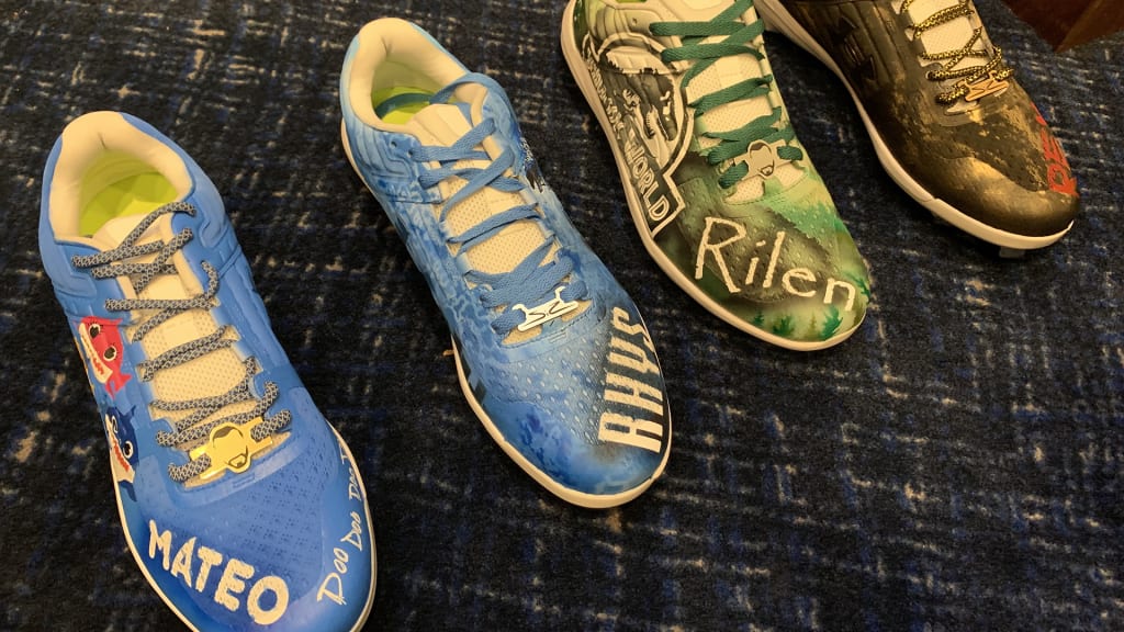 Romo eventually made up his mind, by the way. On Friday, he wore Rhys' Godzilla left shoe and Rilen's "Jurassic World" right shoe as he pitched two-thirds of an inning. On Saturday, he sported Rex's black WWE shoe on his left foot and Mateo's "Baby Shark" shoe on the right side while he threw one-third of an inning.