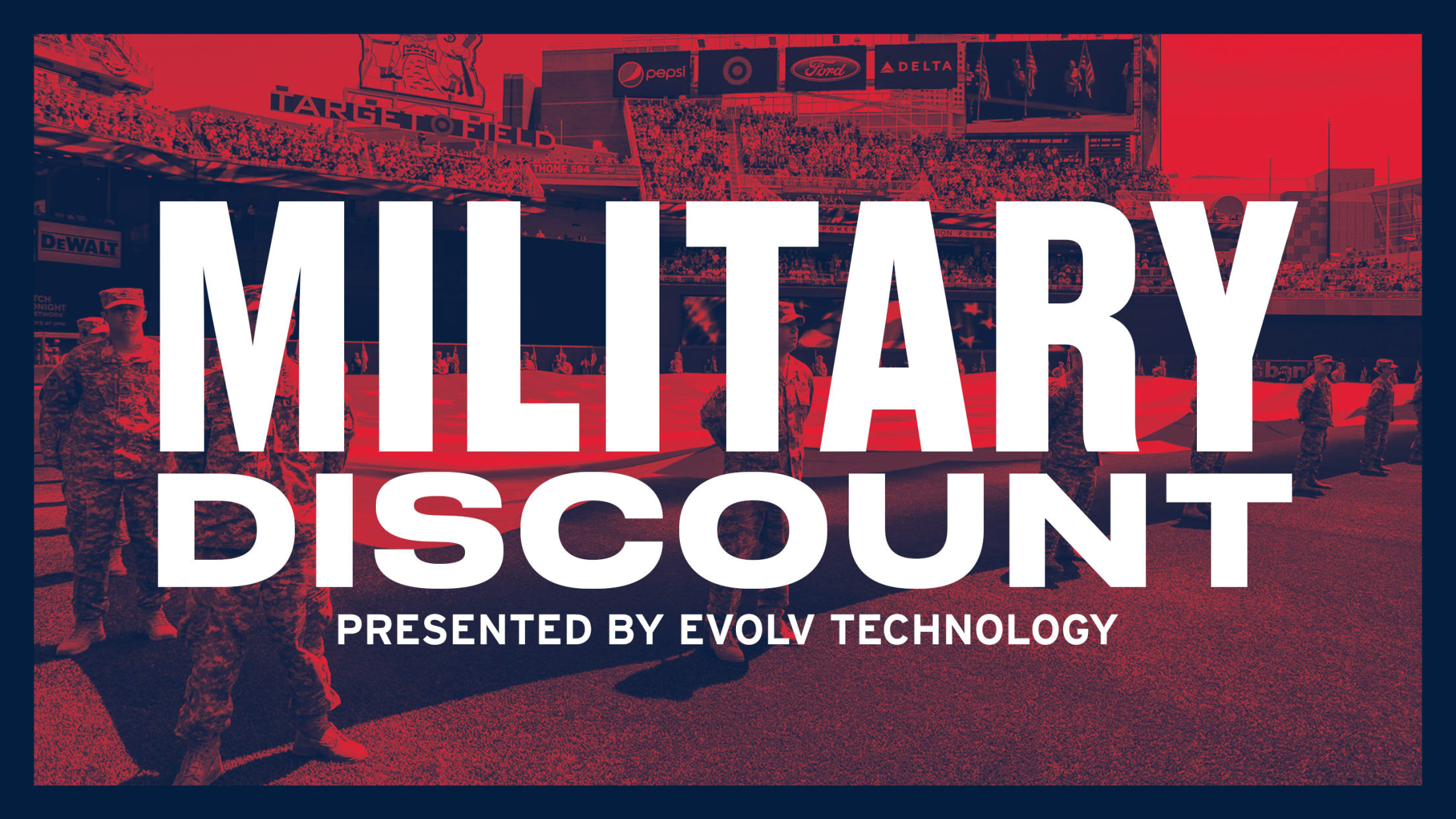 The Minnesota Twins are proud to offer active military members and veterans with a valid ID half-price tickets for Diamond Box High or Upper Deck seating at all Monday – Thursday regular season home games (excluding the Home Opener). Each eligible fan may bring up to three guests at the same discounted rate. *Based on availability. Cannot be combined with other offers or promotions.