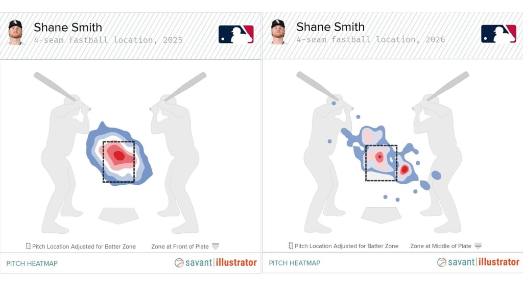 Fastball command is the key area of focus for Smith, who is averaging more than one walk per inning after struggling with his command during Spring Training. According to Statcast, batters have a .143 average against that fastball, an expected batting average of .056 and a hard-hit rate of 0.0. He’s generating whiffs with the pitch at 26.9% compared to 25.3% last year, but there have been too many of those pitches outside the zone.