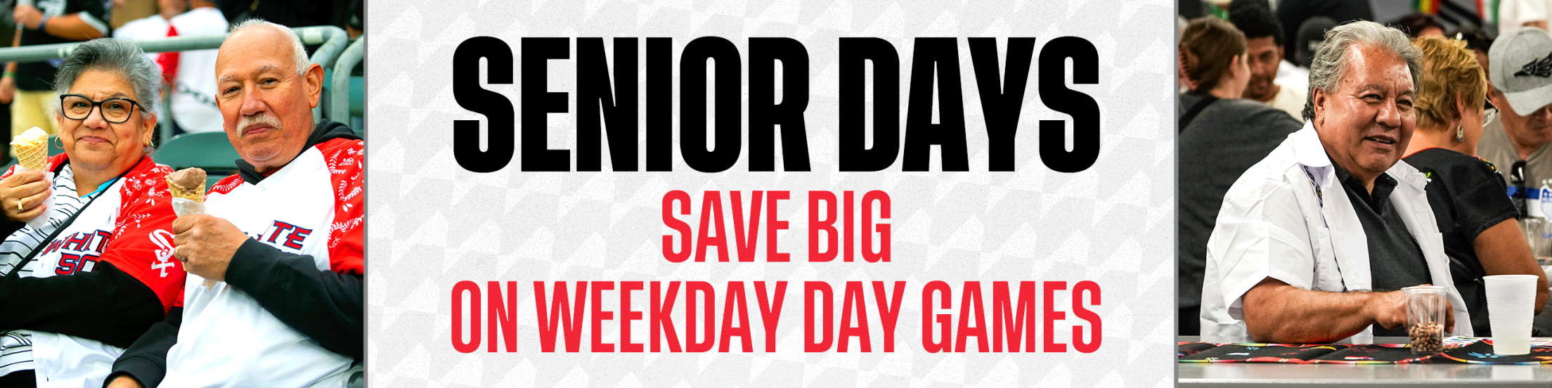 Don’t wait until the weekend to have fun! Every weekday day game, fans 60 years or older get $10 off select areas in the 100 level & $5 off Upper Reserved and Upper Box seats in the 500 level at Rate Field.