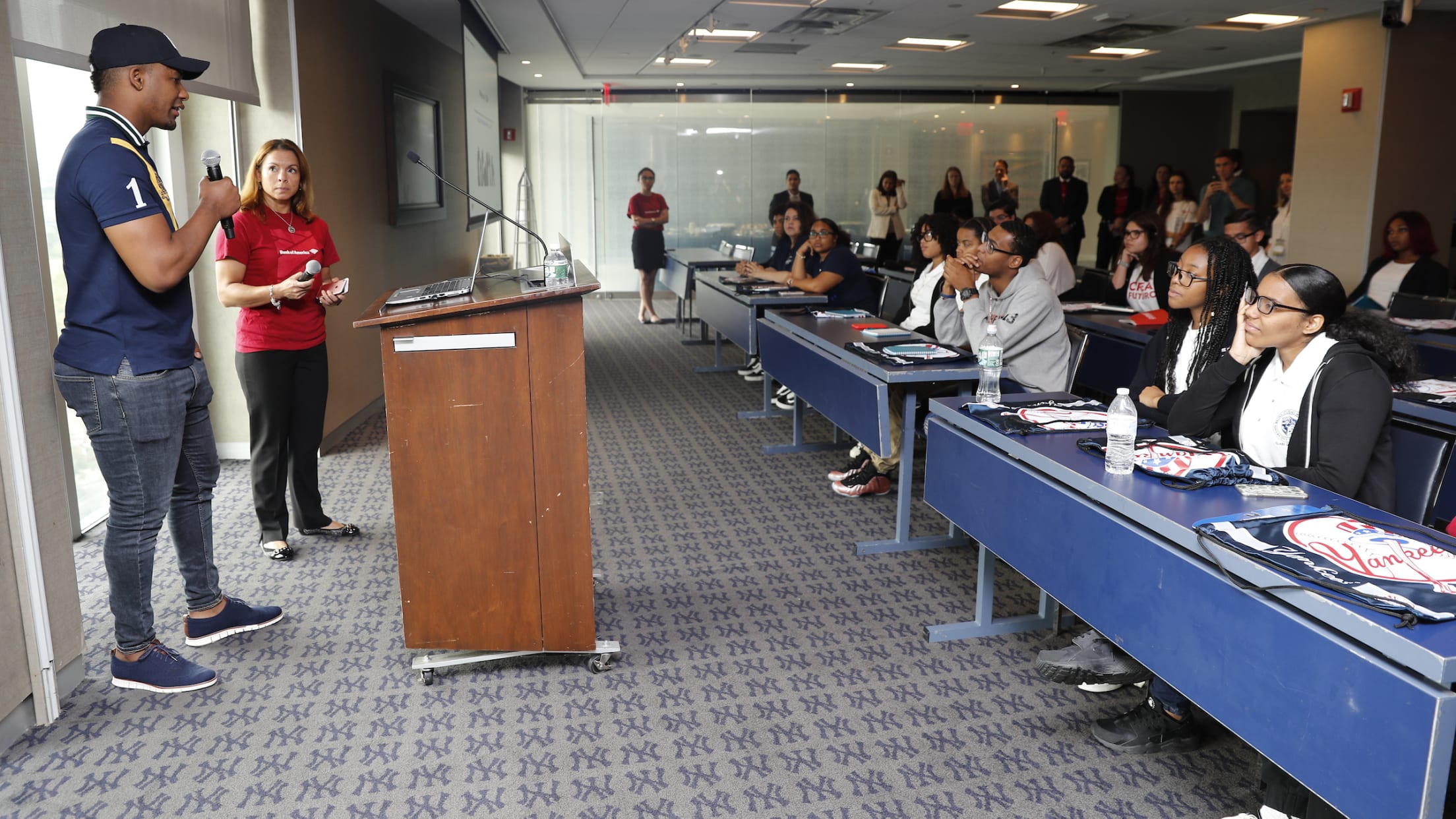 The Hispanic/Latino Organization for Leadership and Advancement (HOLA) — under the Bank of America Diversity & Inclusion Framework — provided a financial education workshop to a group of college students from Hispanic Federation’s education programs. HOLA’s mission is to support financial wellness in the community and promote economic and social growth. The Yankees were proud to host this event at Yankee Stadium on Monday, September 16th.