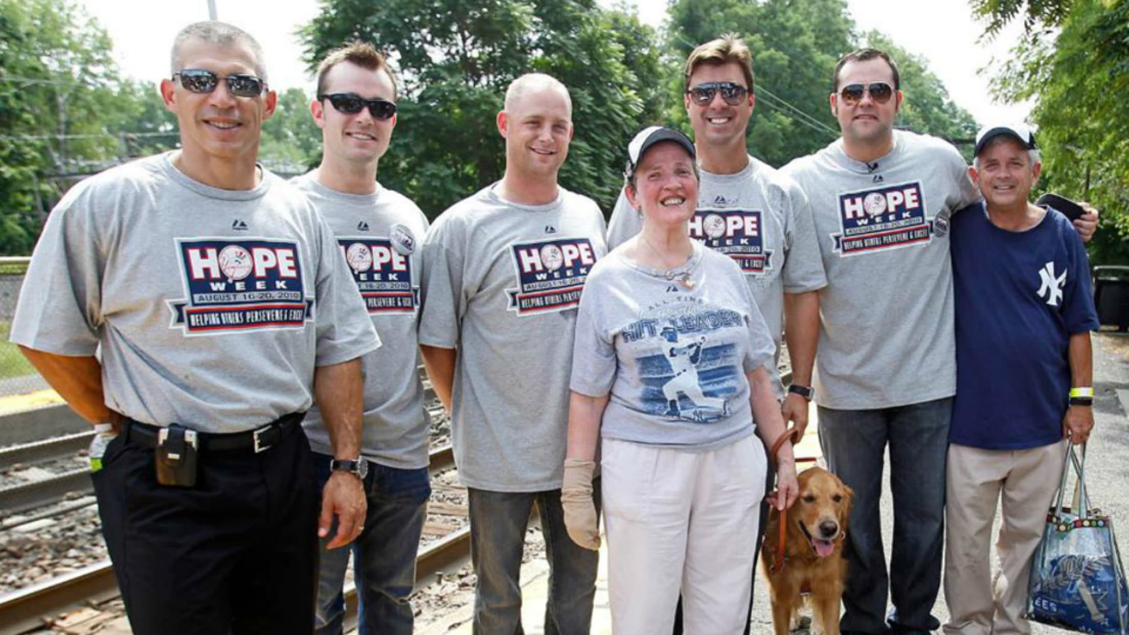 On HOPE Week Tuesday, Manager Joe Girardi, players Joba Chamberlain, Chad Gaudin and David Robertson and former Yankee Tino Martinez surprised Jane at her Morris Plains, N.J., home and joined her on her trek to the Stadium.